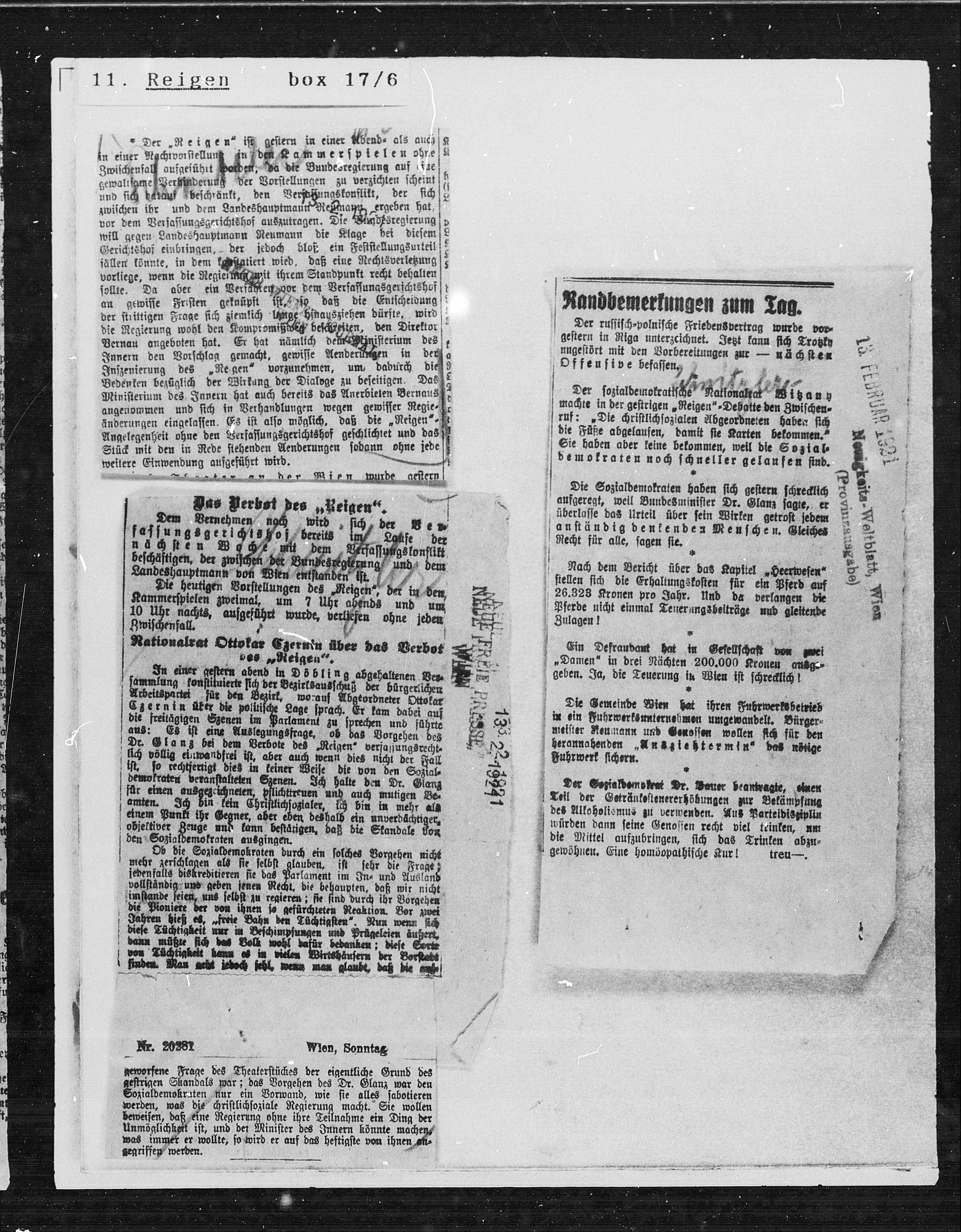 Dr. Glanz bei dem Verbote des „Reigen“ verjassungsrecht¬