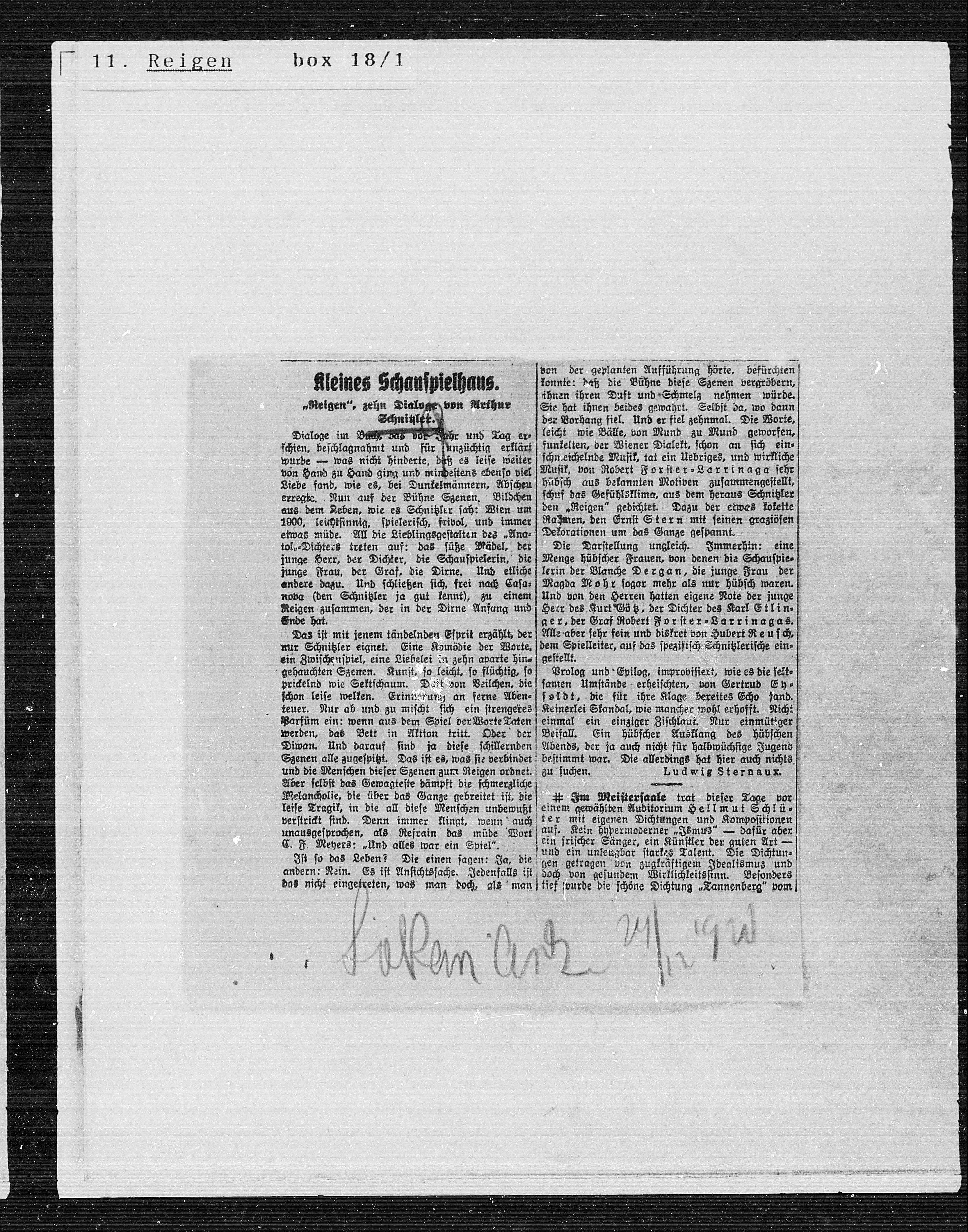 en „Reigen“ gedichtet. Dazu der etwas kokette