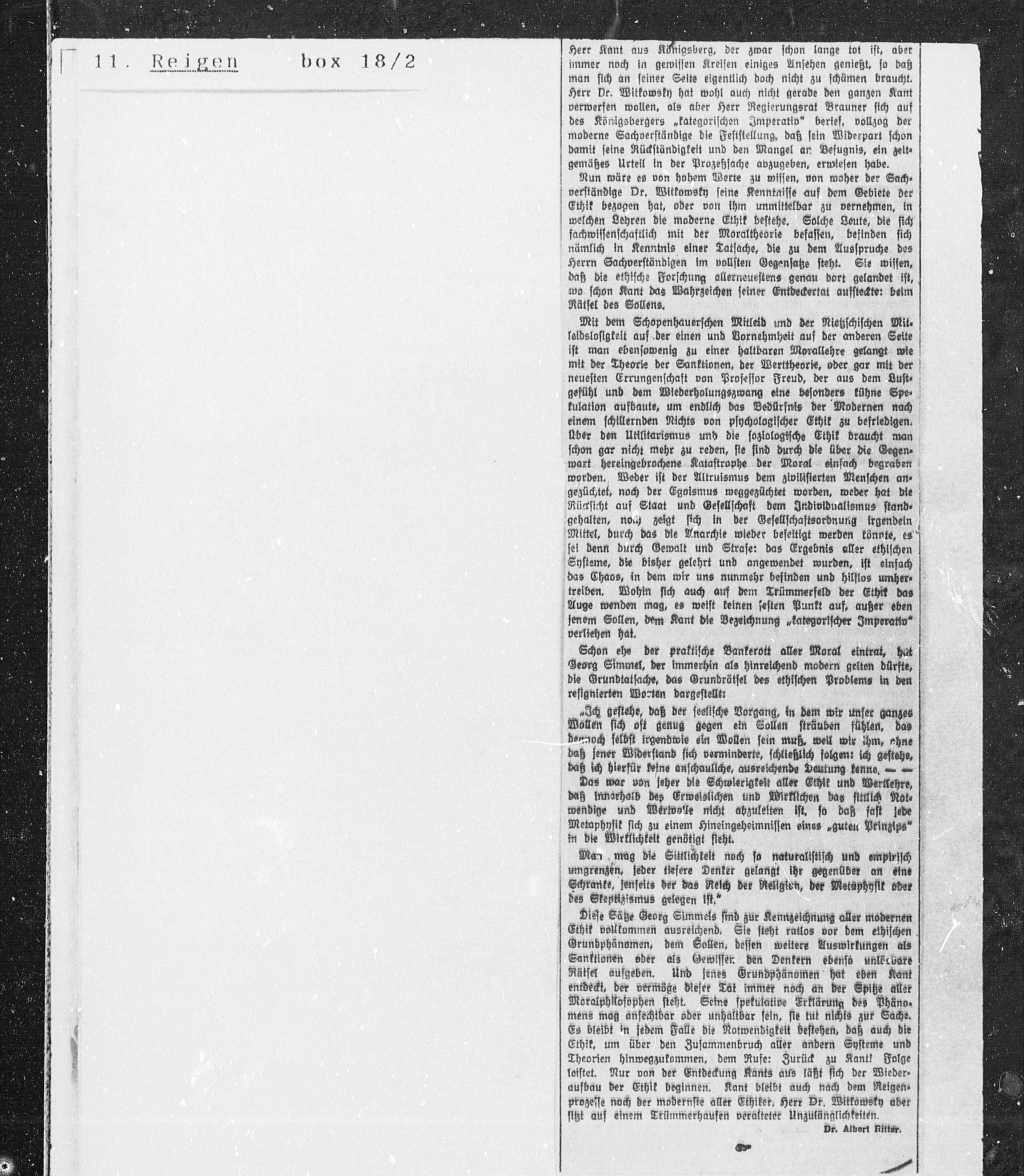 Herr Dr. Witkowsky hat wohl auch nicht gerade den ganzen Kant