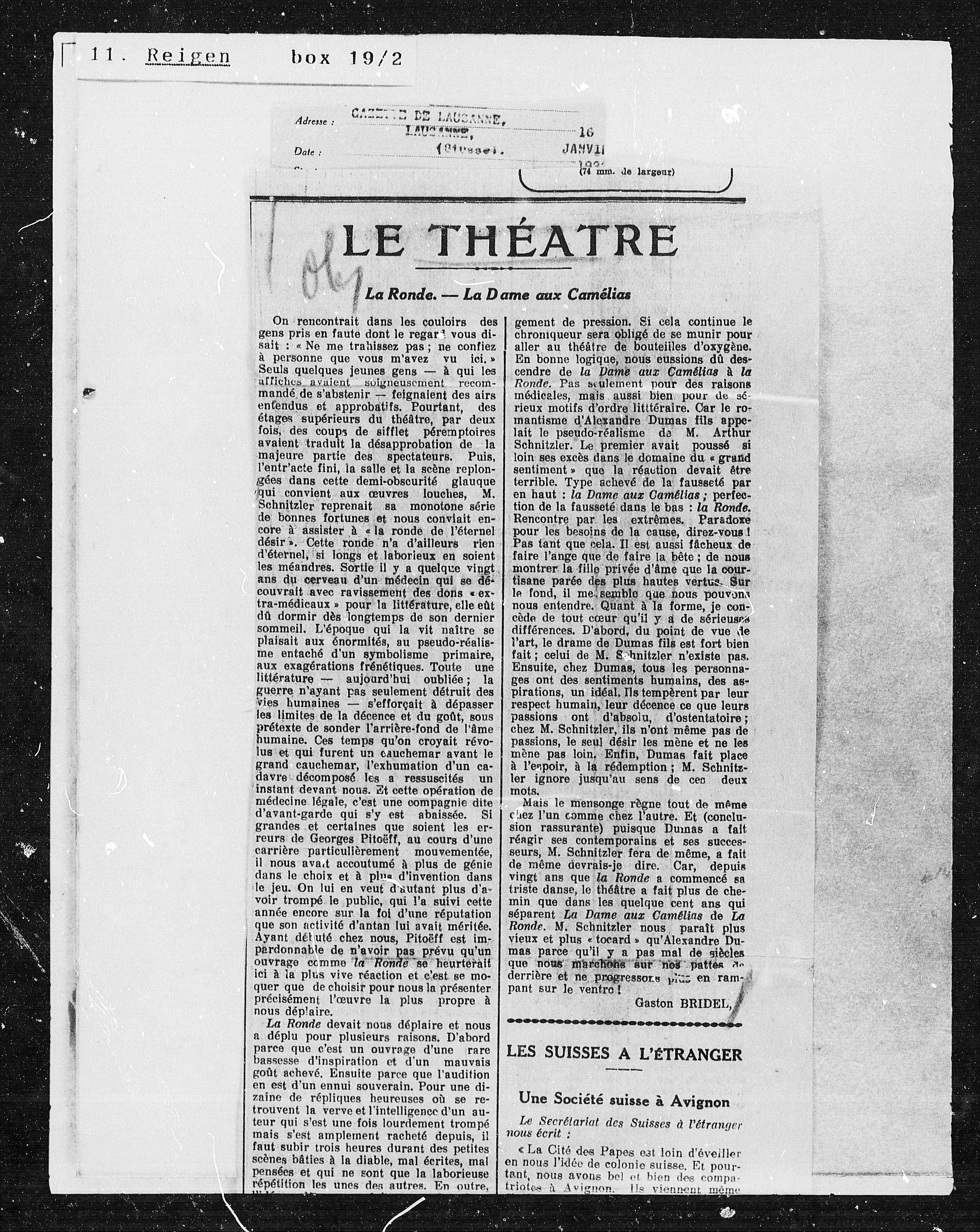Ronde. M. Schnitzler nous paraft plus