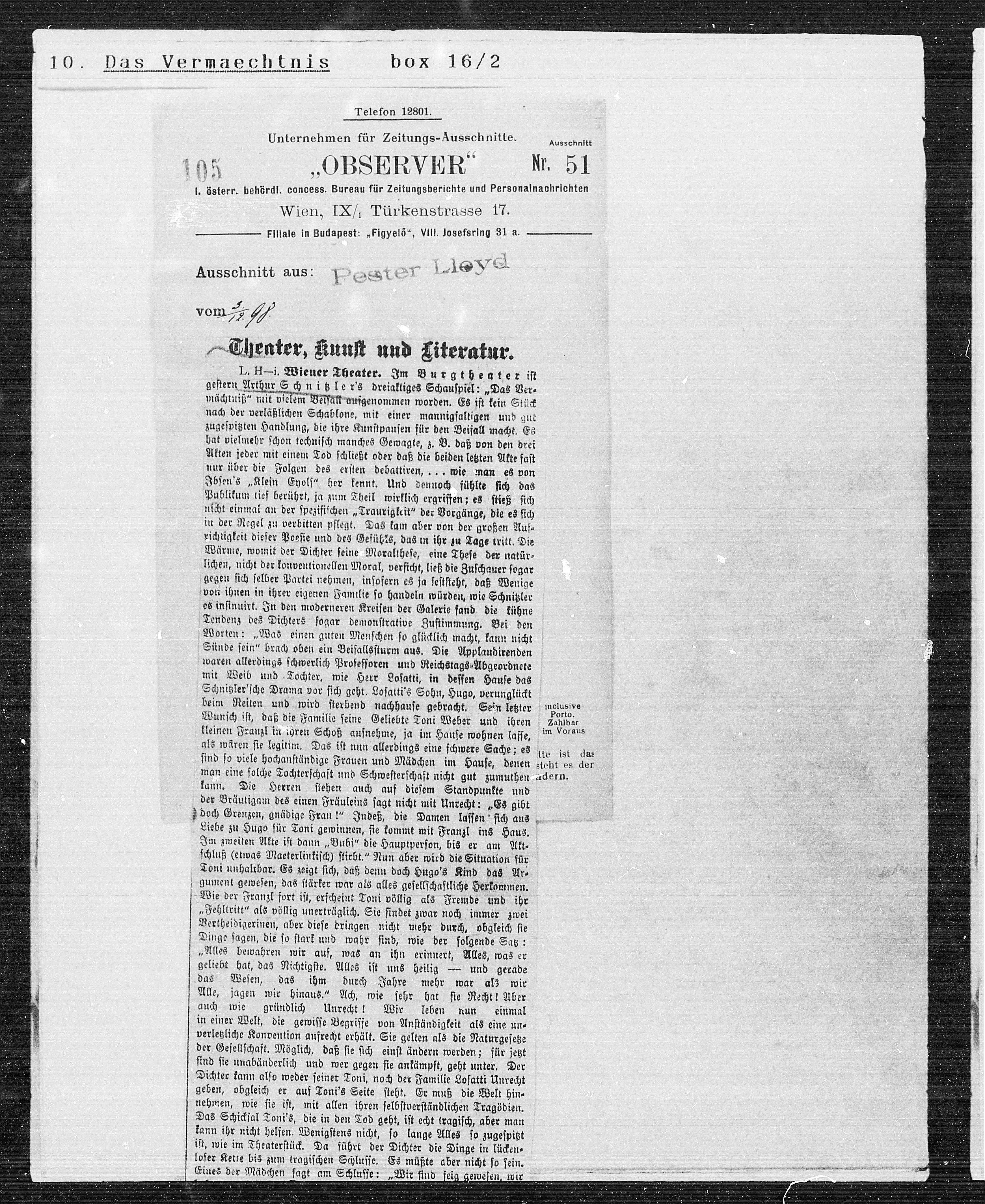 L. H—i. Wiener Theater. Im Burgtheater ist