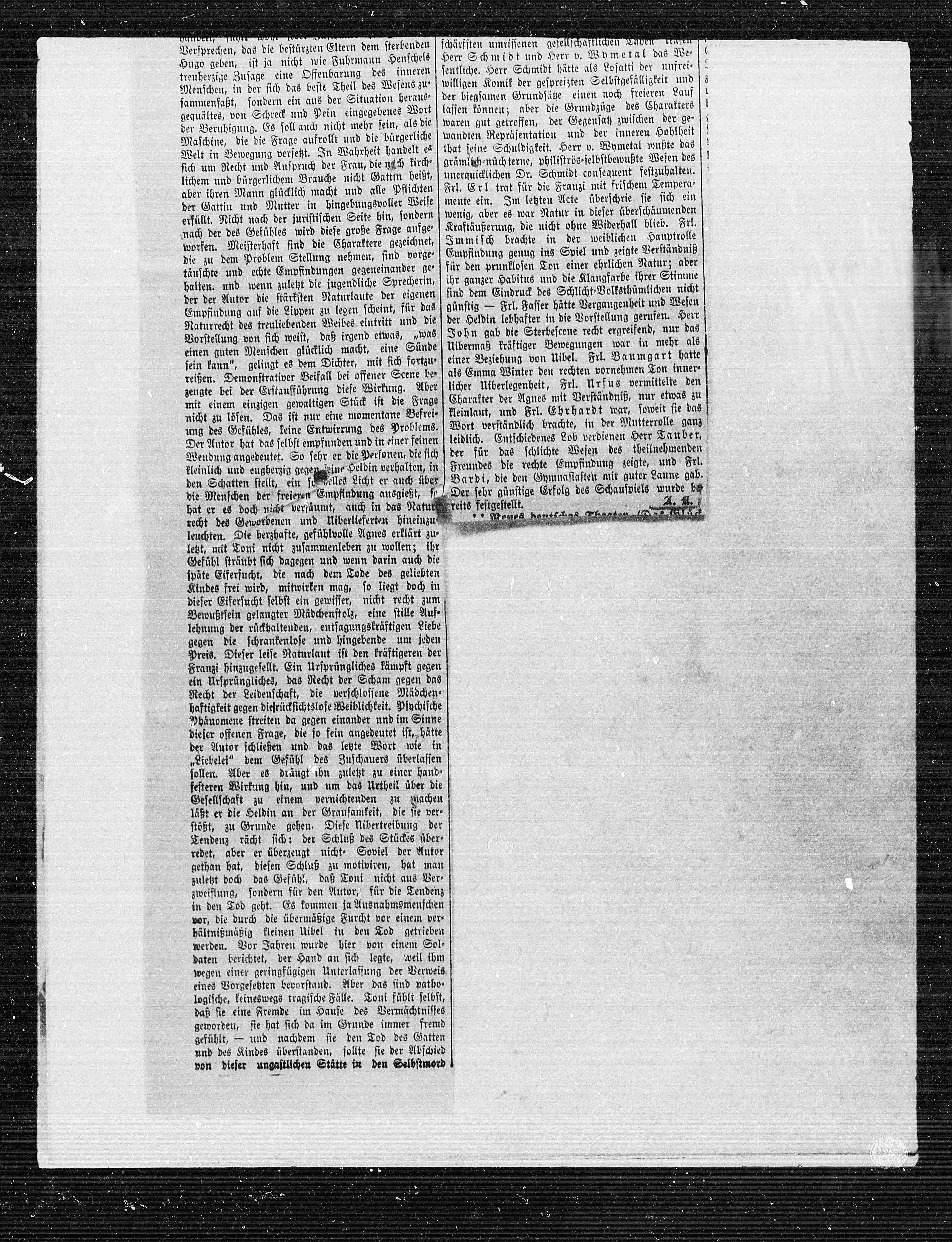 Der sehr günstige Erfolg des Schauspiels wurde be¬