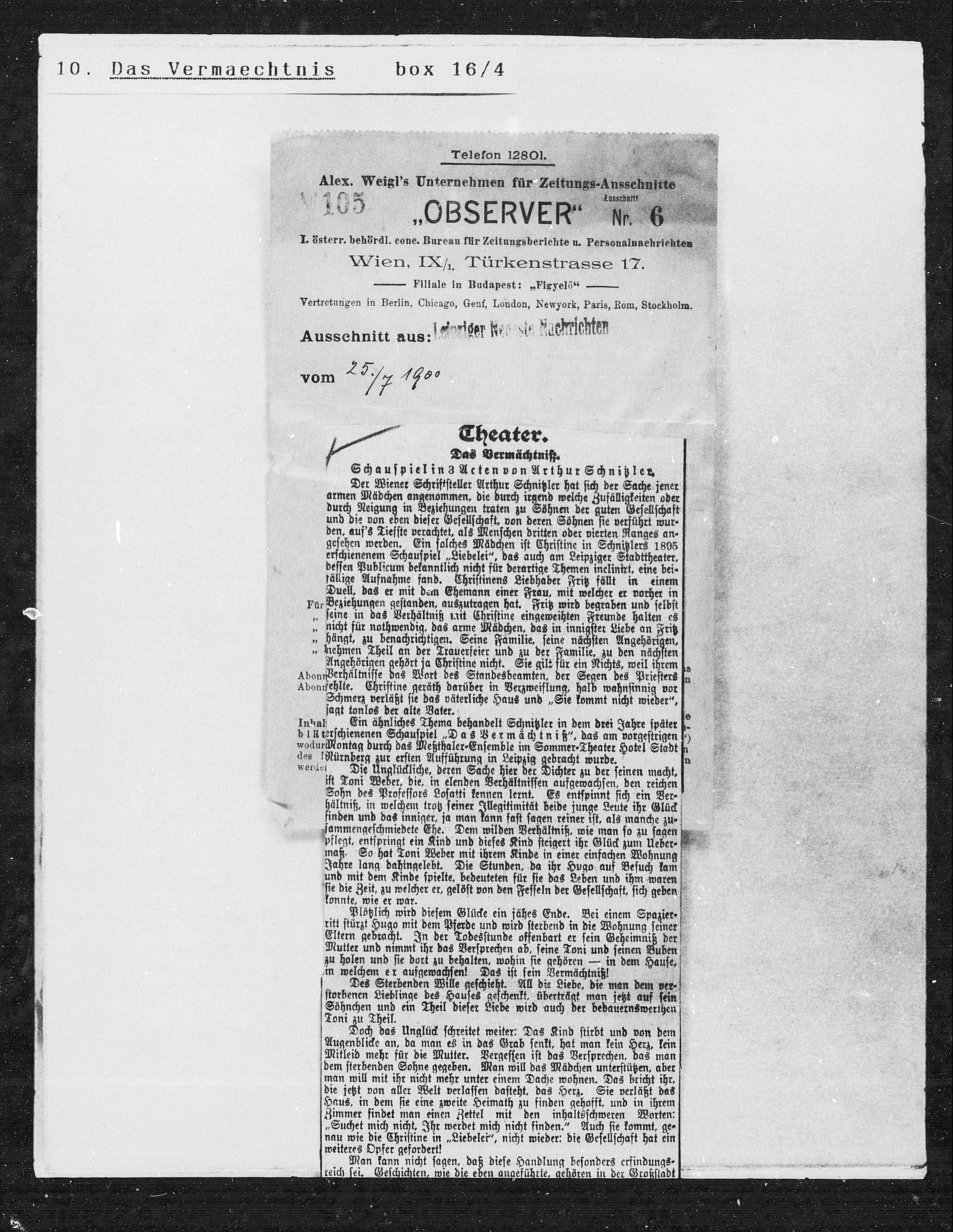 Alex. Weigl’s Unternehmen für Zeitungs-Aussehnitte