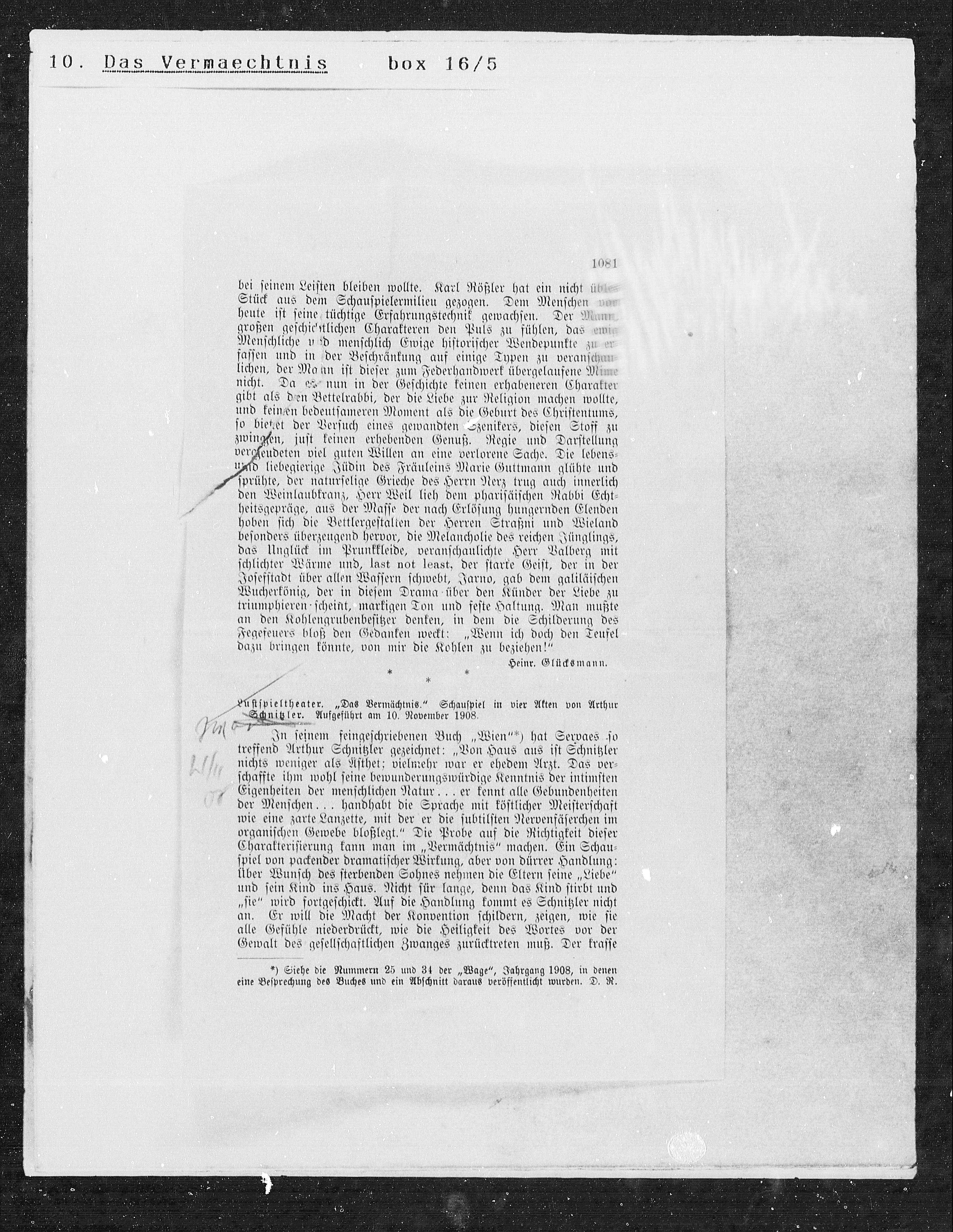 Schnitzler. Aufgeführt am 10. November 1908.
