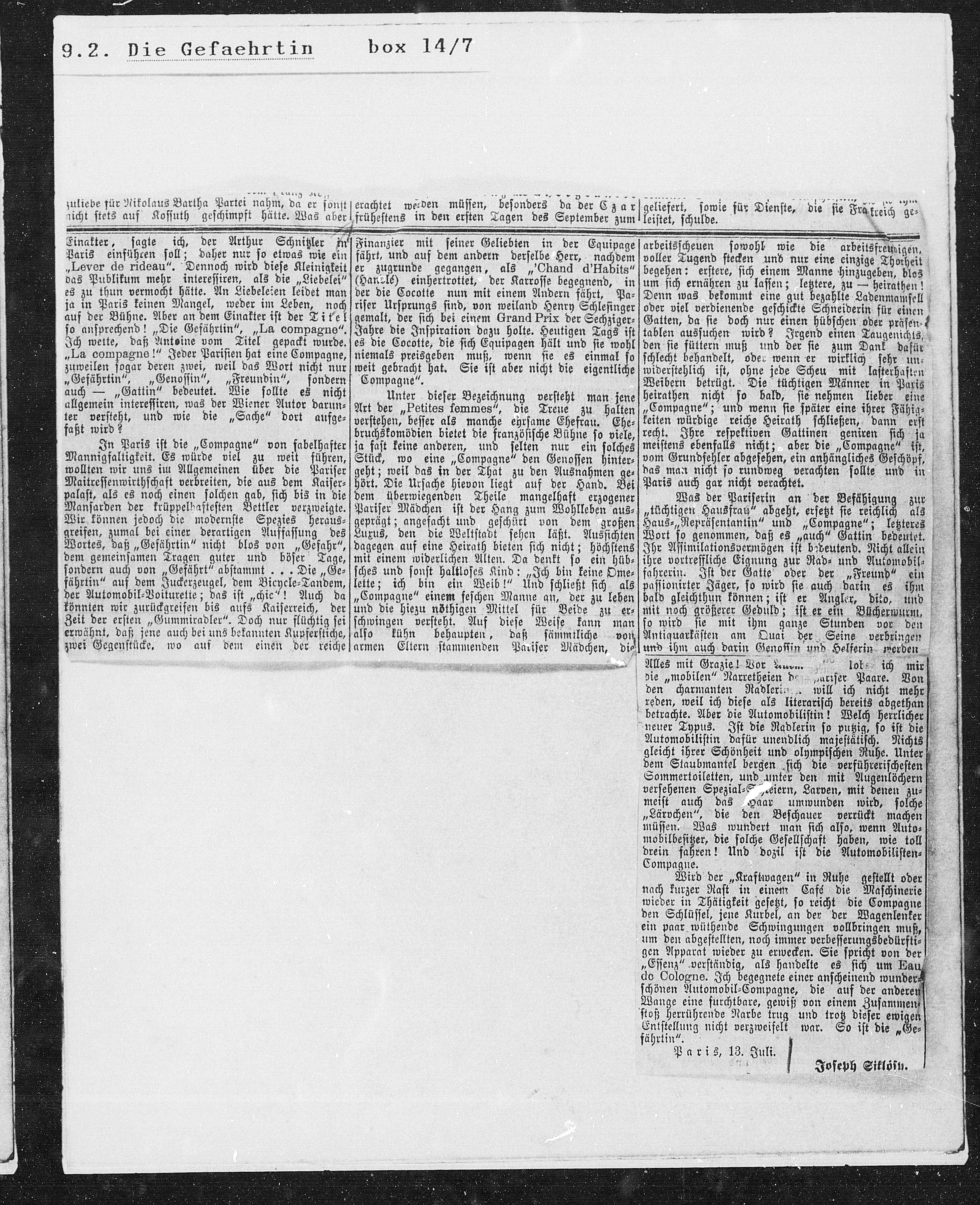 Paris, 13. Juli.