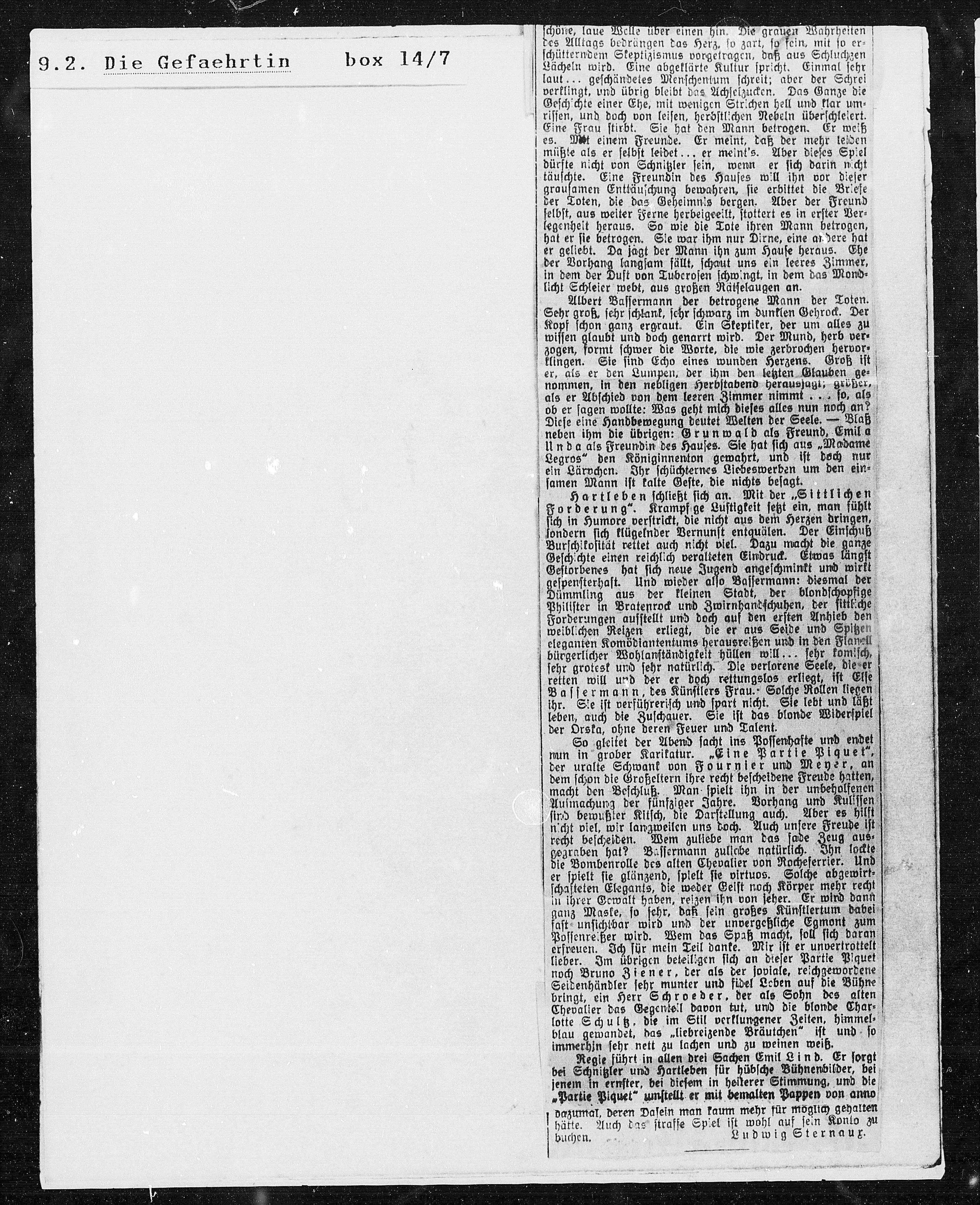 gespensterhaft. Und wieder also Bassermann: diesmal der