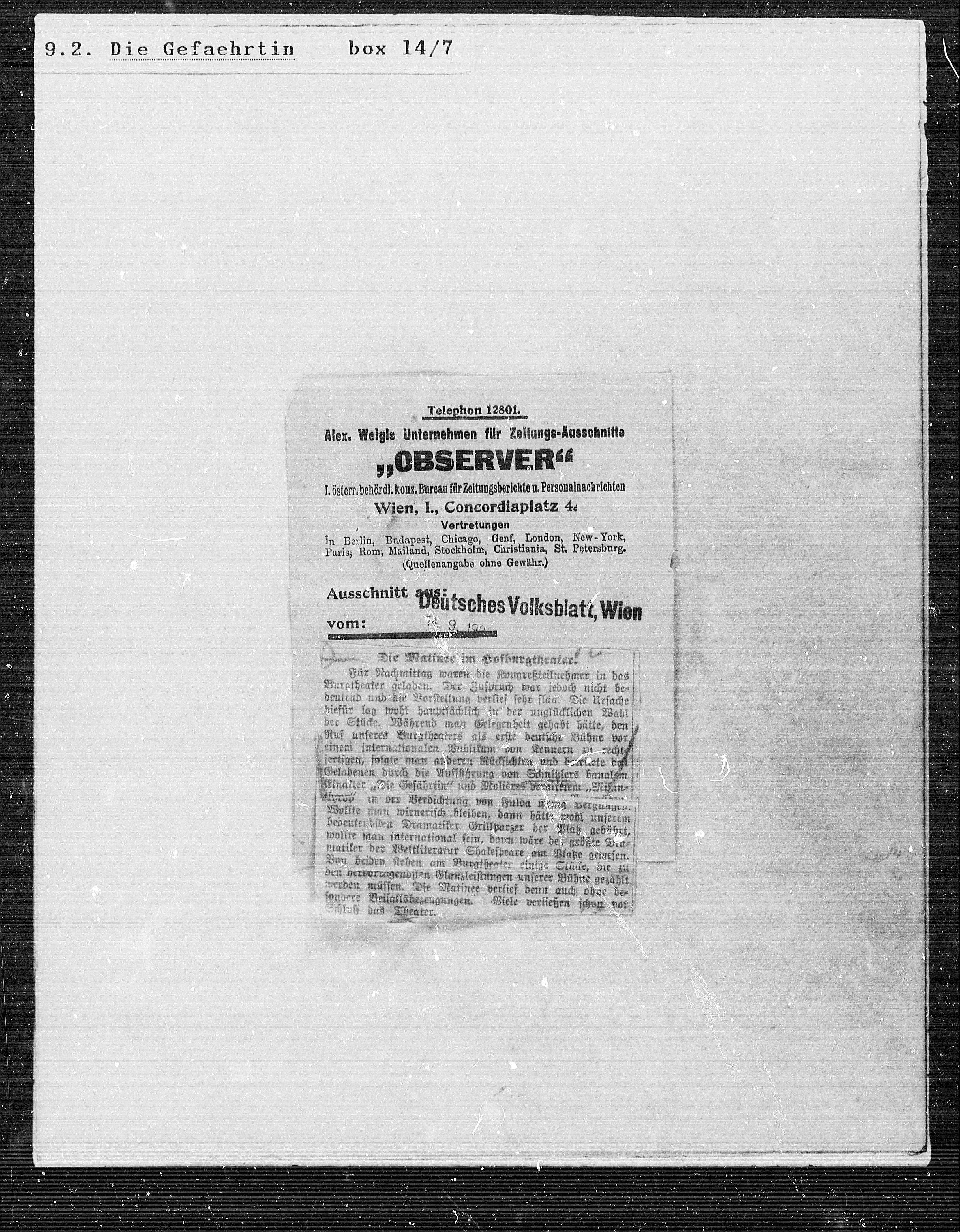 Alex. Weigls Unternehmen für Zeitungs-Ausschnitte
