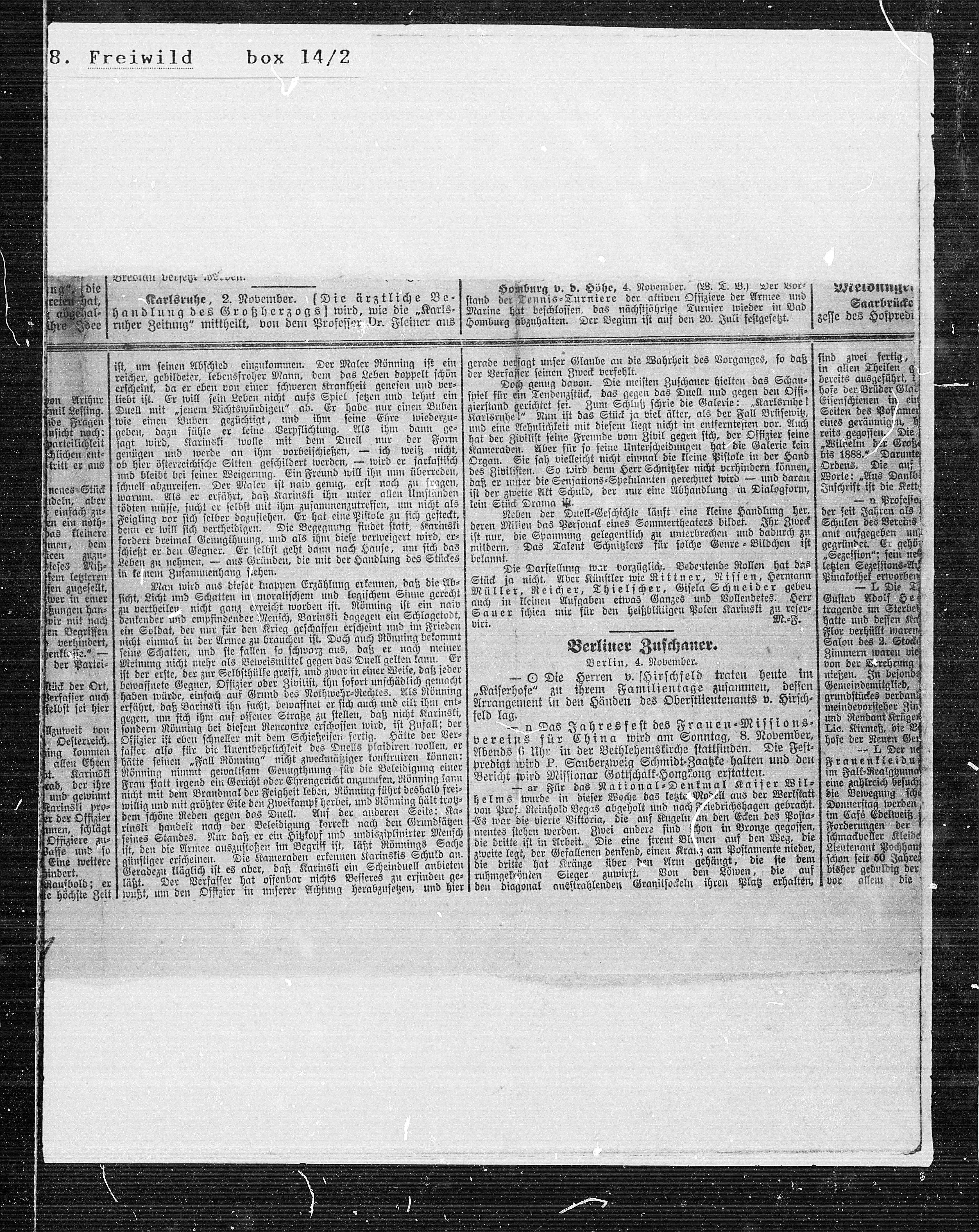 mil Lessing. Duell mit jenem Nichtswürdigen ab. Er habe nur einen Buben zierstand gerichtet sei. Zum Schluß schrie die Galerie: „Karlsruhe! Eisenschienen in ei¬