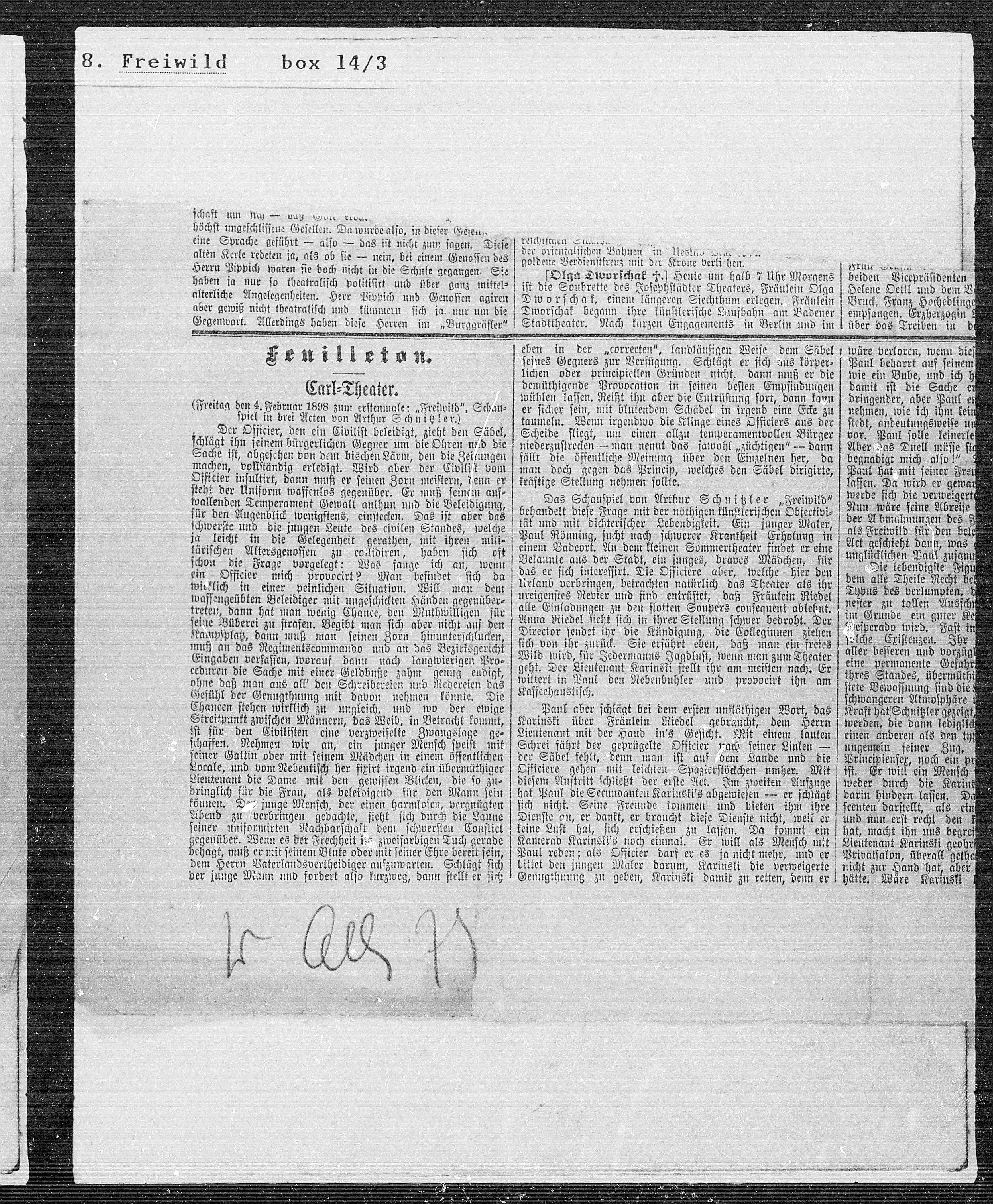 (Freitag den 4. Februar 1898 zum erstenmale: „Freiwild“, Schau¬