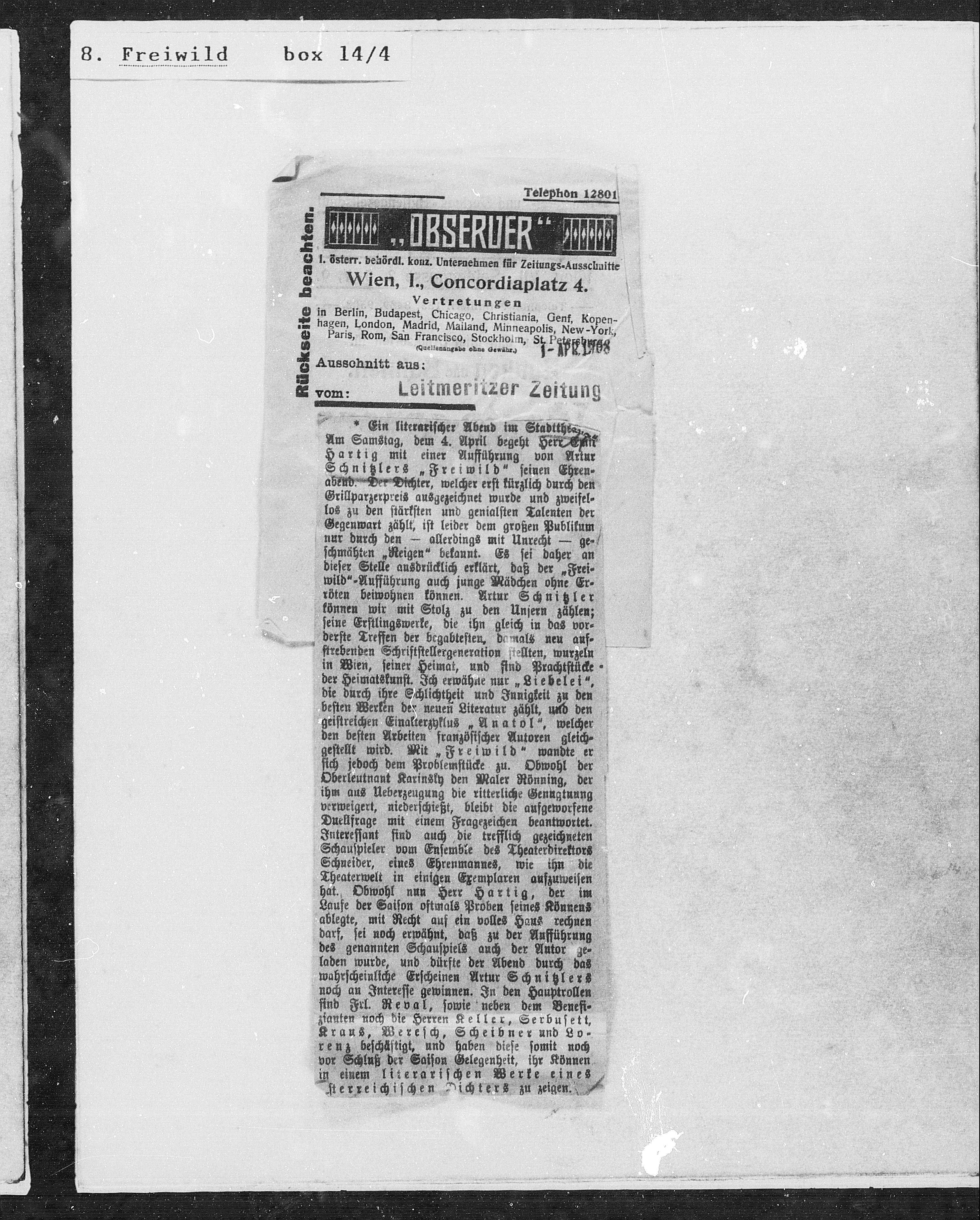 1. österr. behördl. konz. Unternehmen für Zeitungs-Ausschnitte