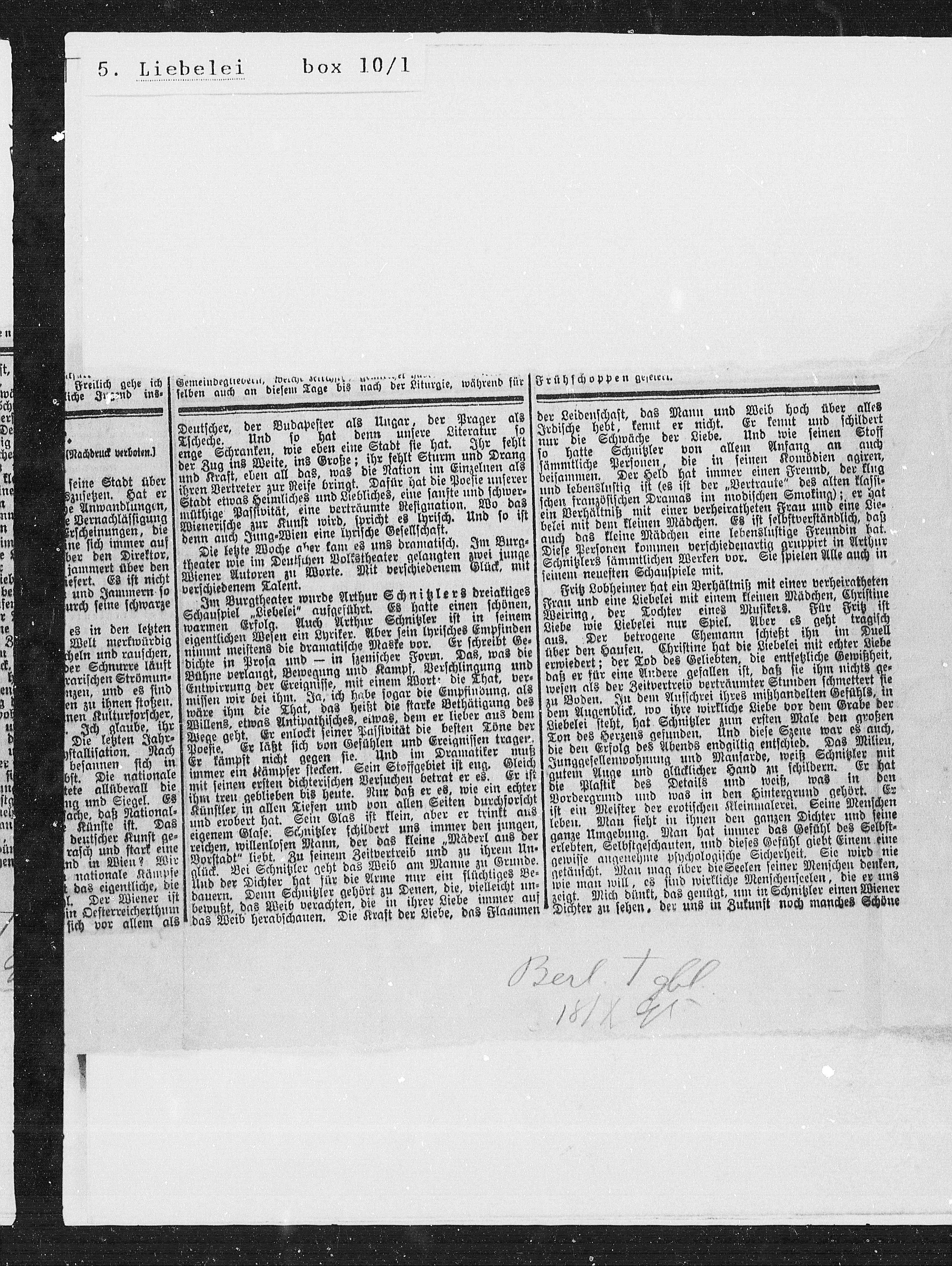 Schauspiel „Liebelei“ aufgeführt. Es hatte einen schönen,