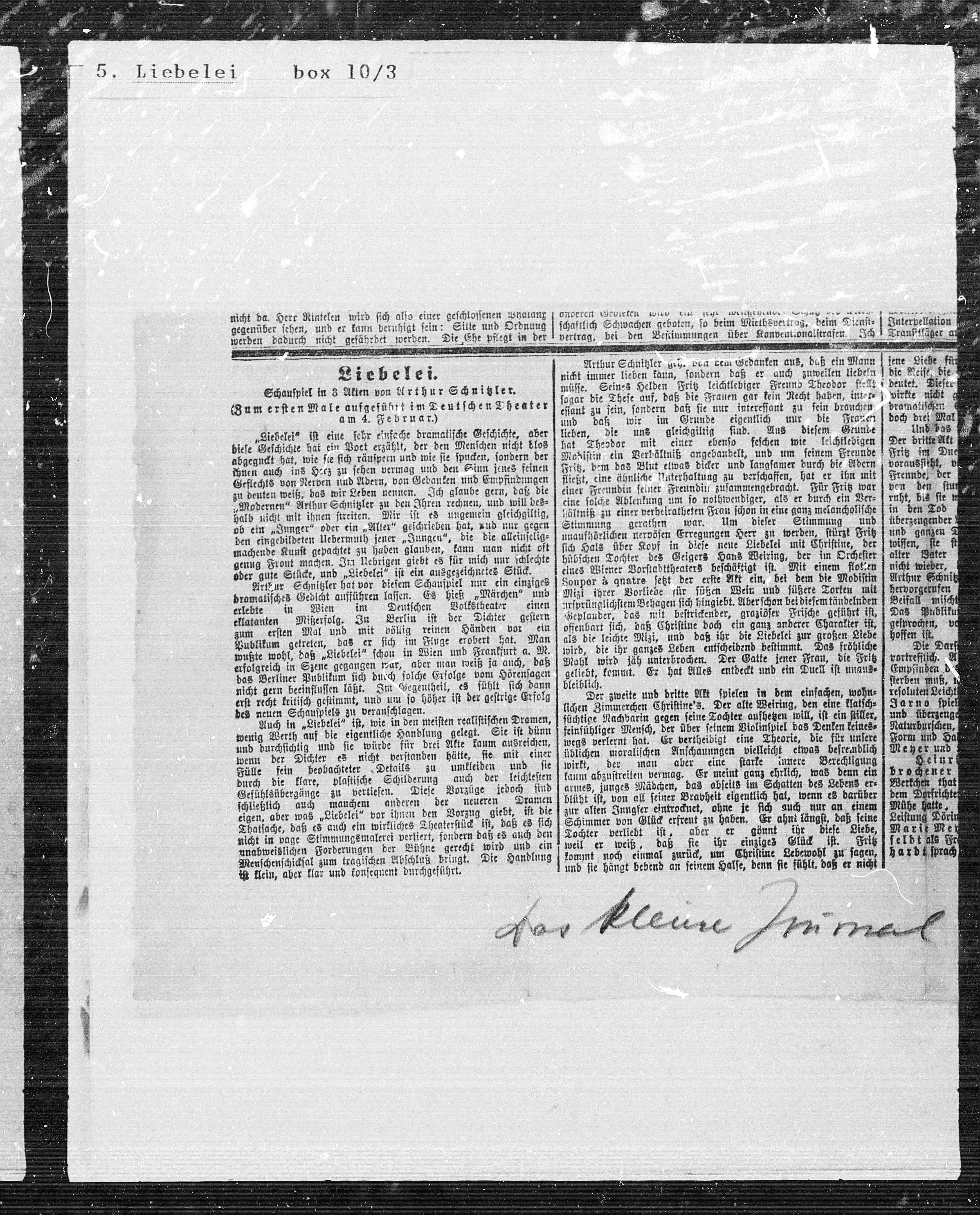 wußte wohl, daß „Liebelei“ schon in Wien und Frankfurt a. M.