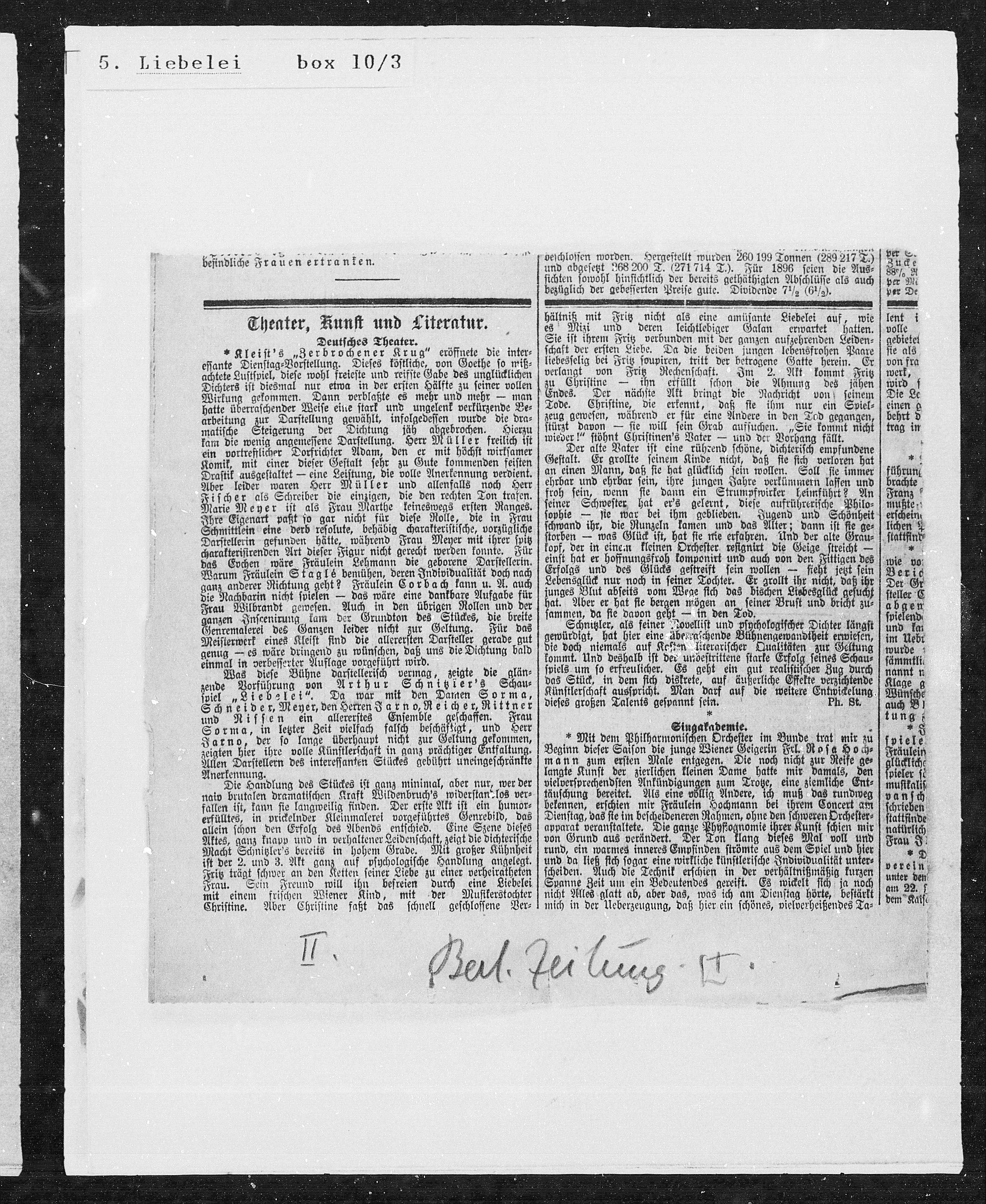 zende Vorführung von Arthur Schnitzier's Schau¬