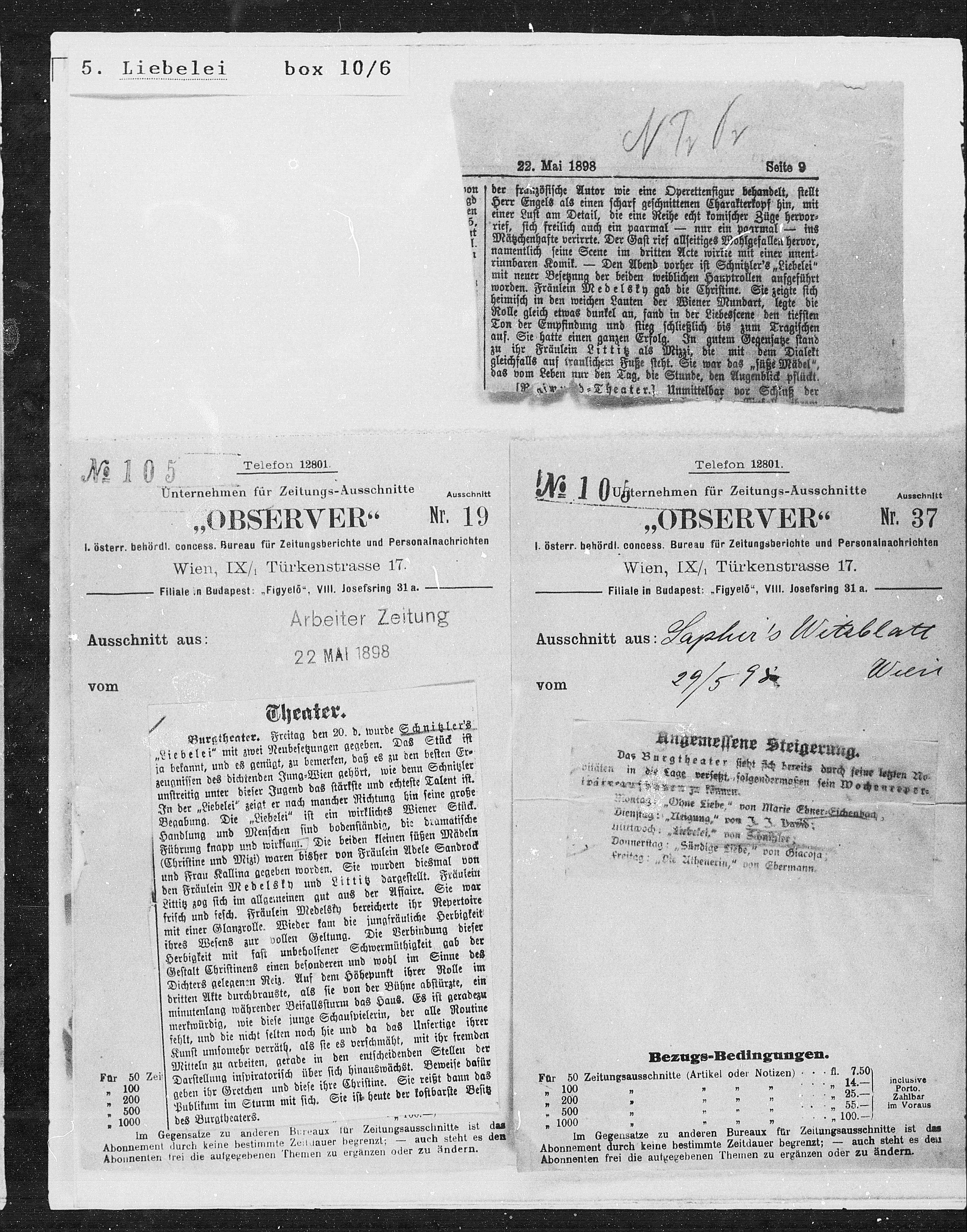 Für 50 Zeitungsausschnitte (Artikel oder Notizen) fl. 7.50