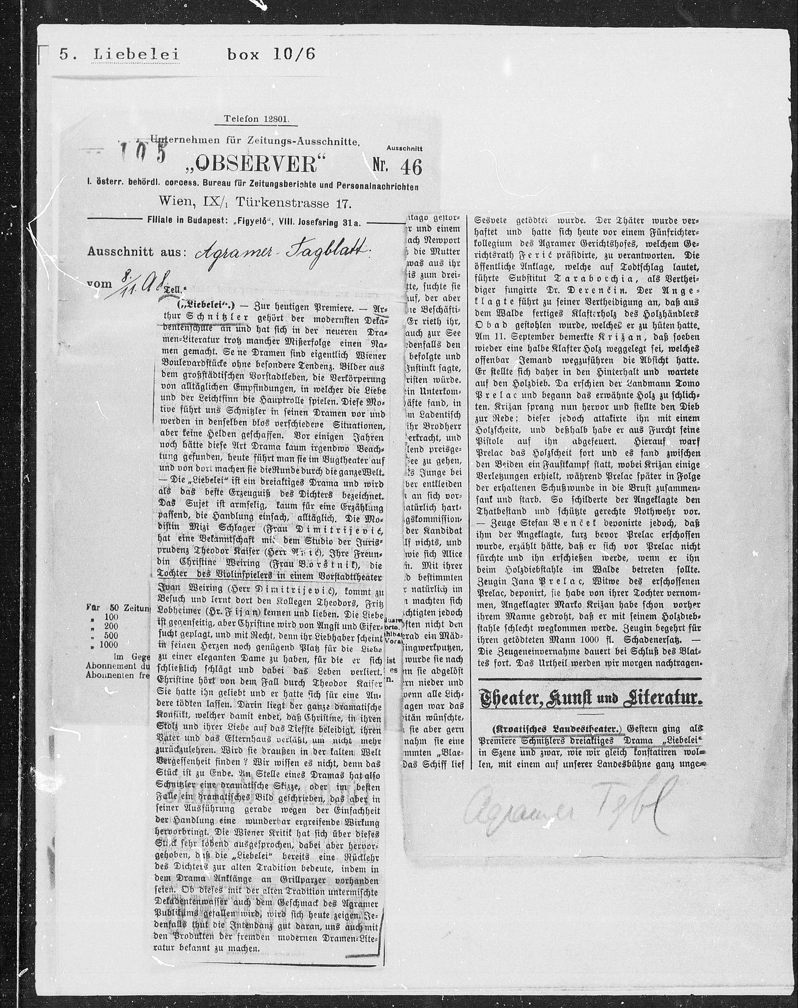 Filiale in Budapest: „Figyeló“, VIII. Josefsring 31a. —