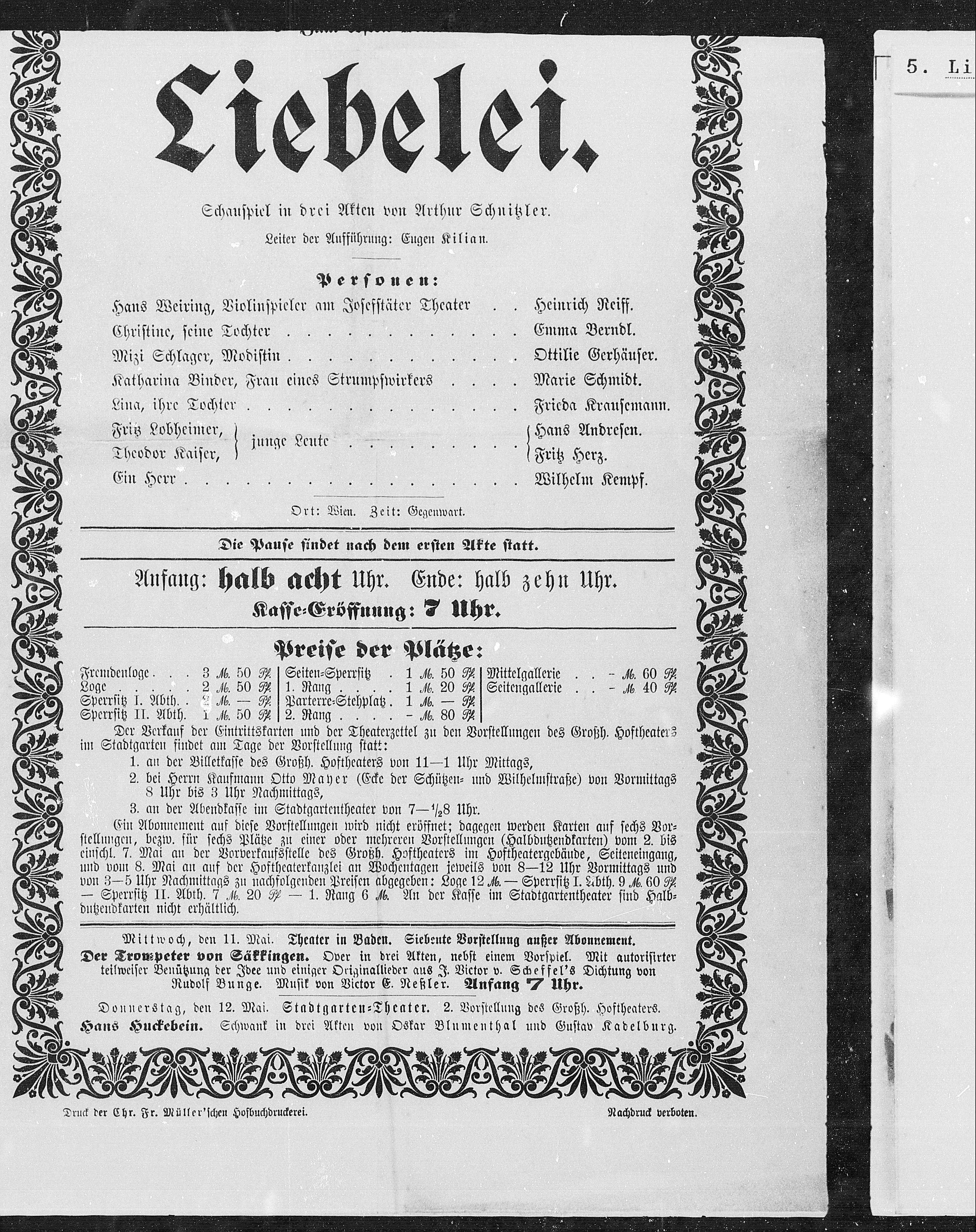 Donnerstag, den 12. Mai. Stadtgarten=Theater. 2. Vorstellung des Großh. Hoftheaters.