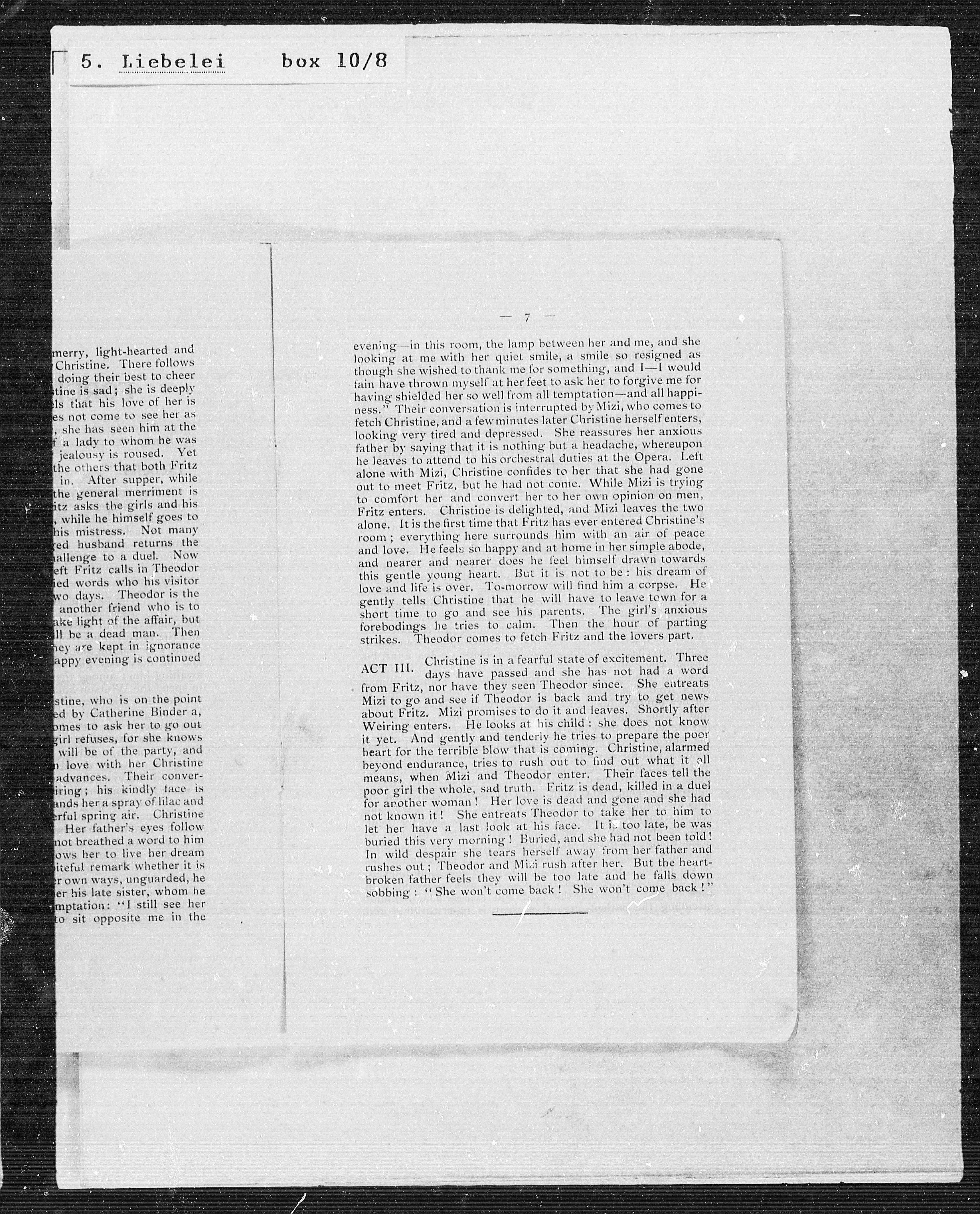 Fritz enters. Christine is delighted, and Mizi leaves the two