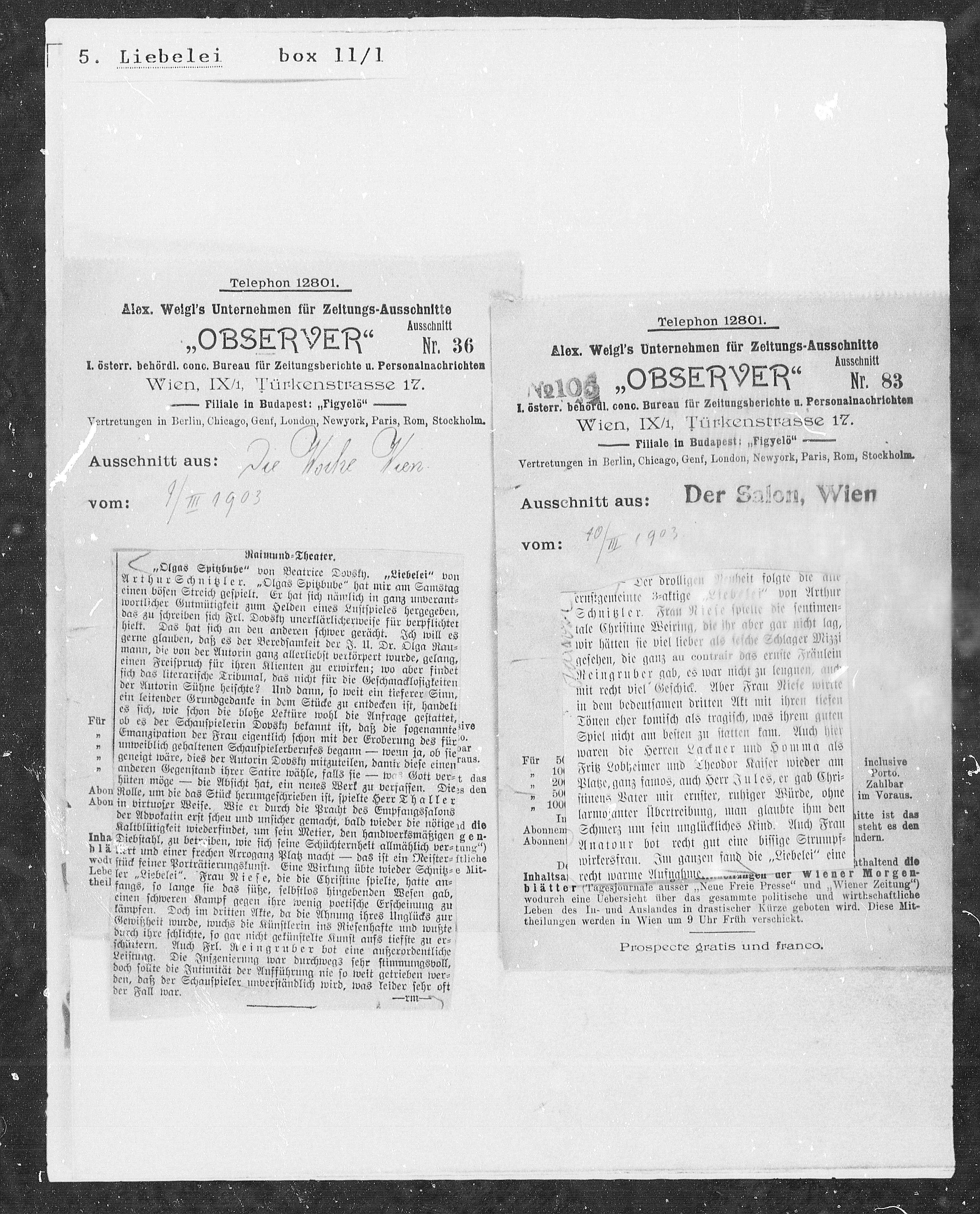 Alex. Weigl’s Unternehmen für Zeitungs-Ausschnitte