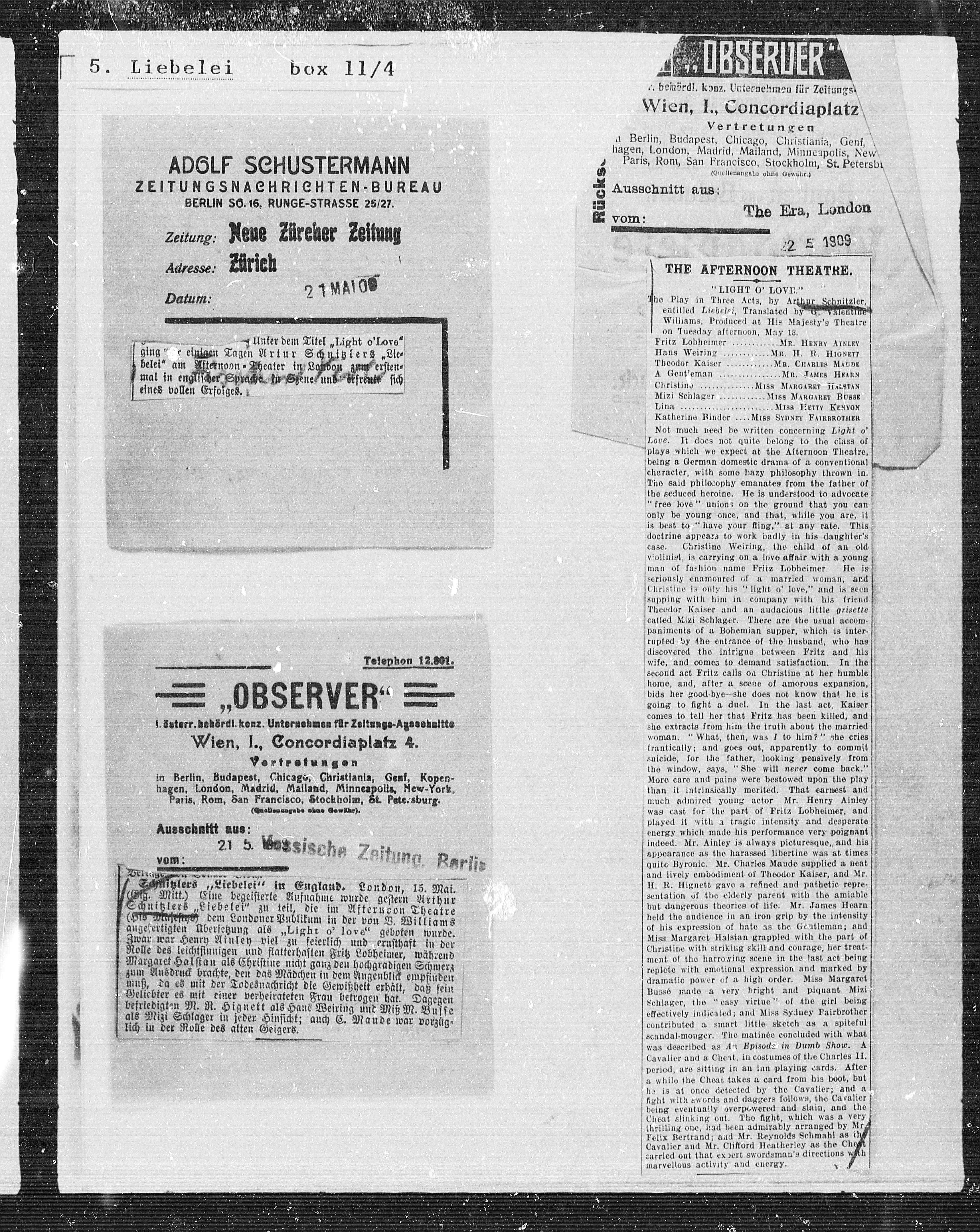 Schlitzlers „Liebelei“ in England. London, 15. Mai.