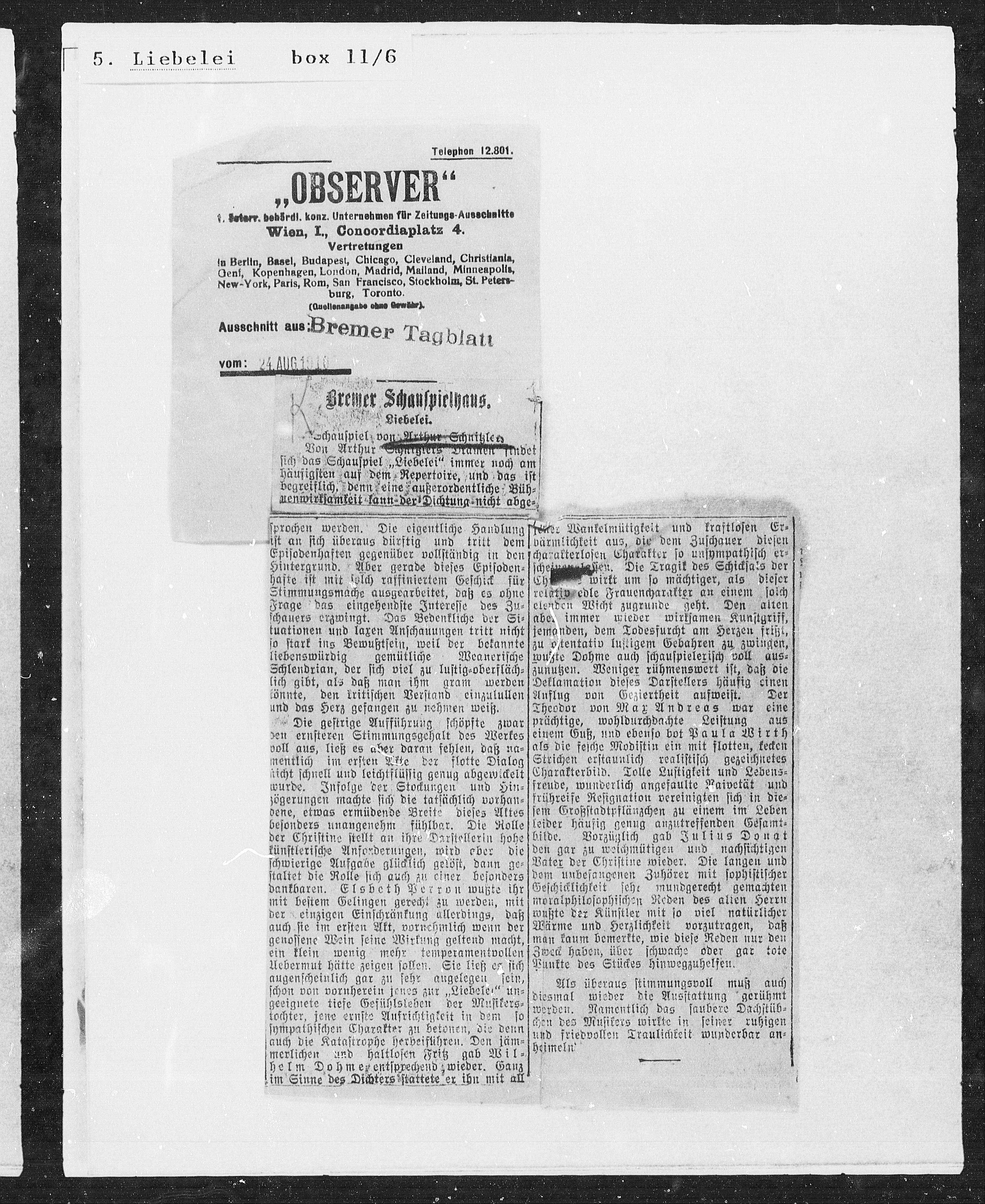 aussohnitt aus Bremer Tagblati