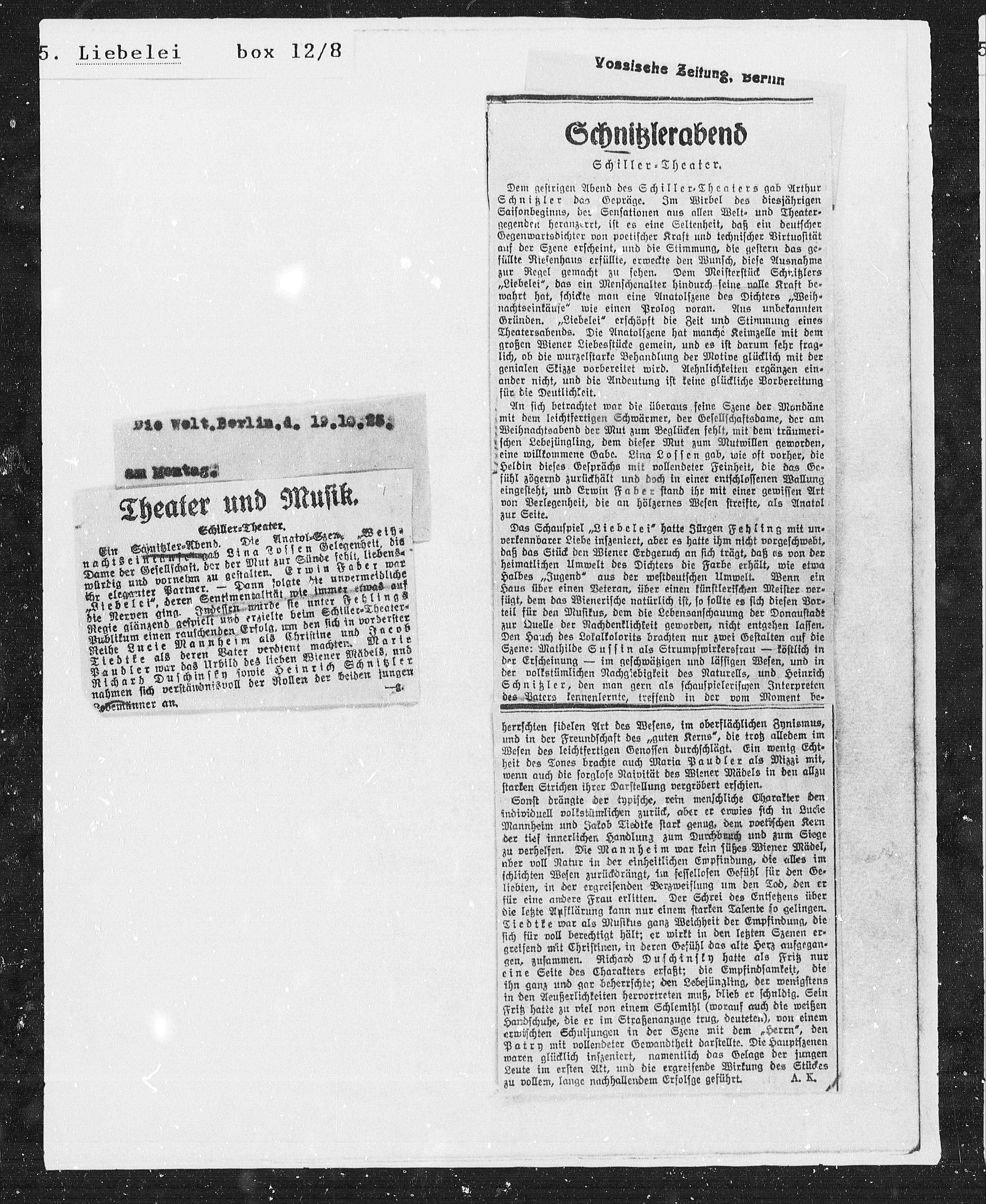 Regie glänzend gespielt und erzielte beim Schiller=Theater¬