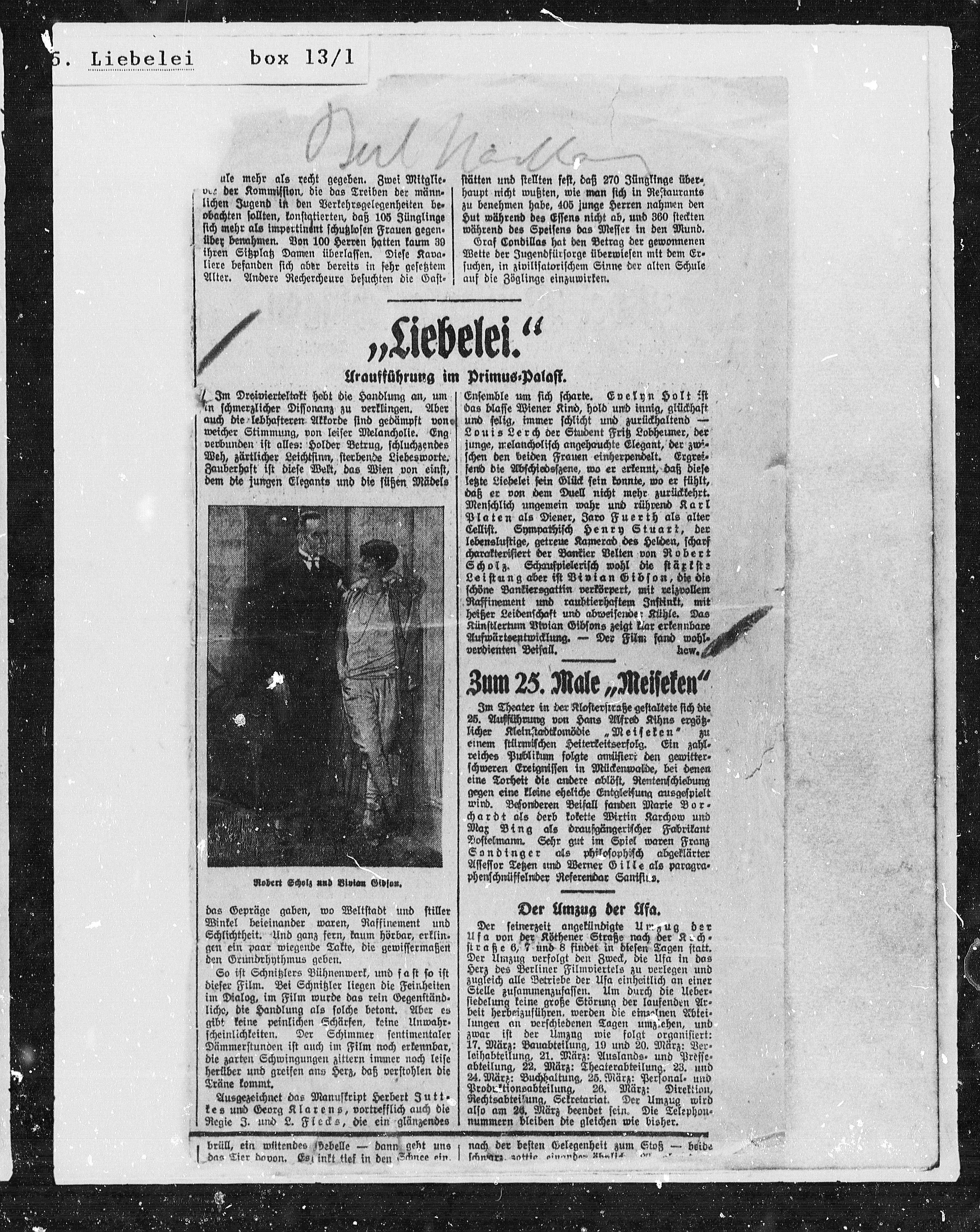 Aufwärtsentwicklung. — Der Film fand wohl¬