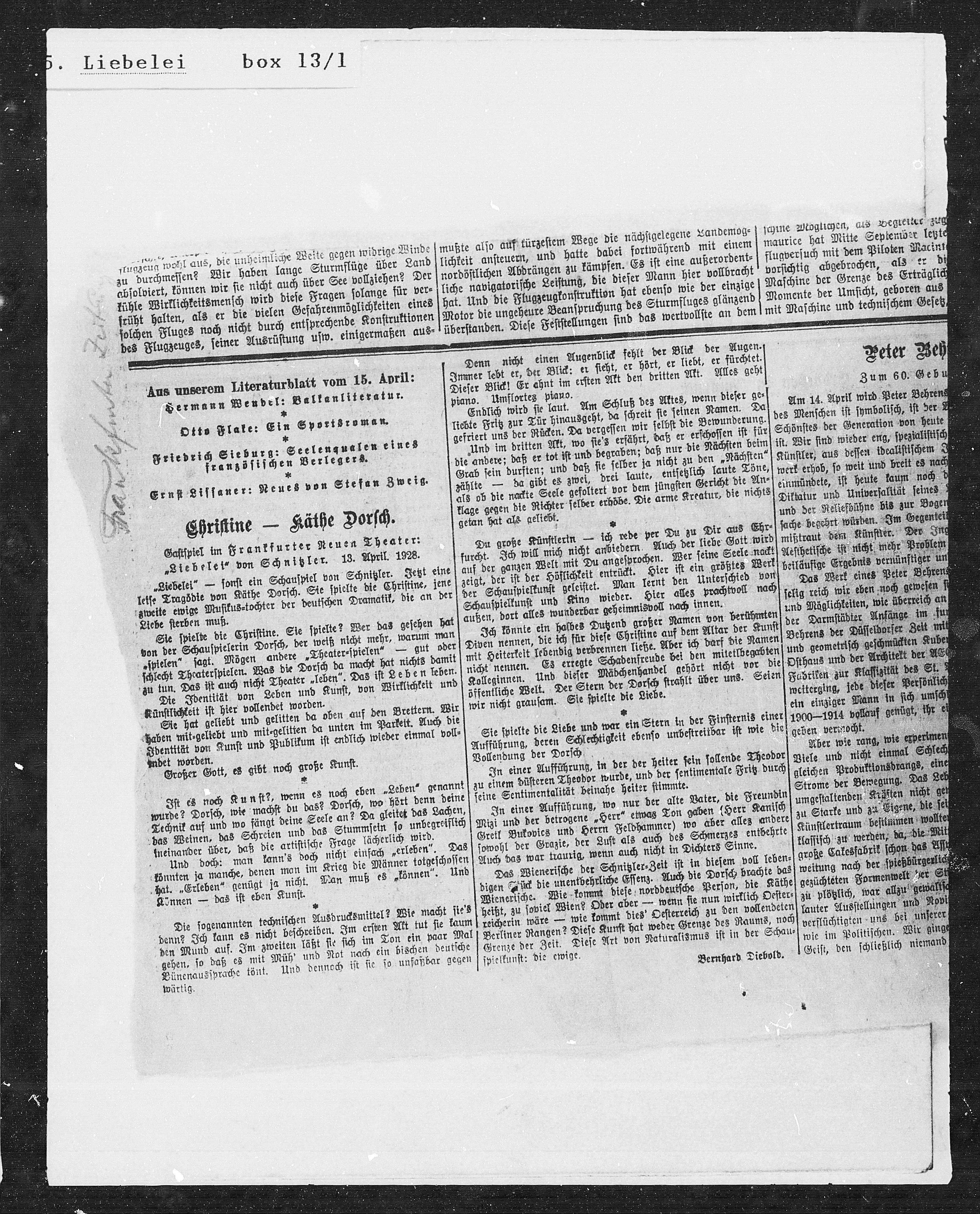 „Liebelei“ von Schnitzler. 13. April. 1928.