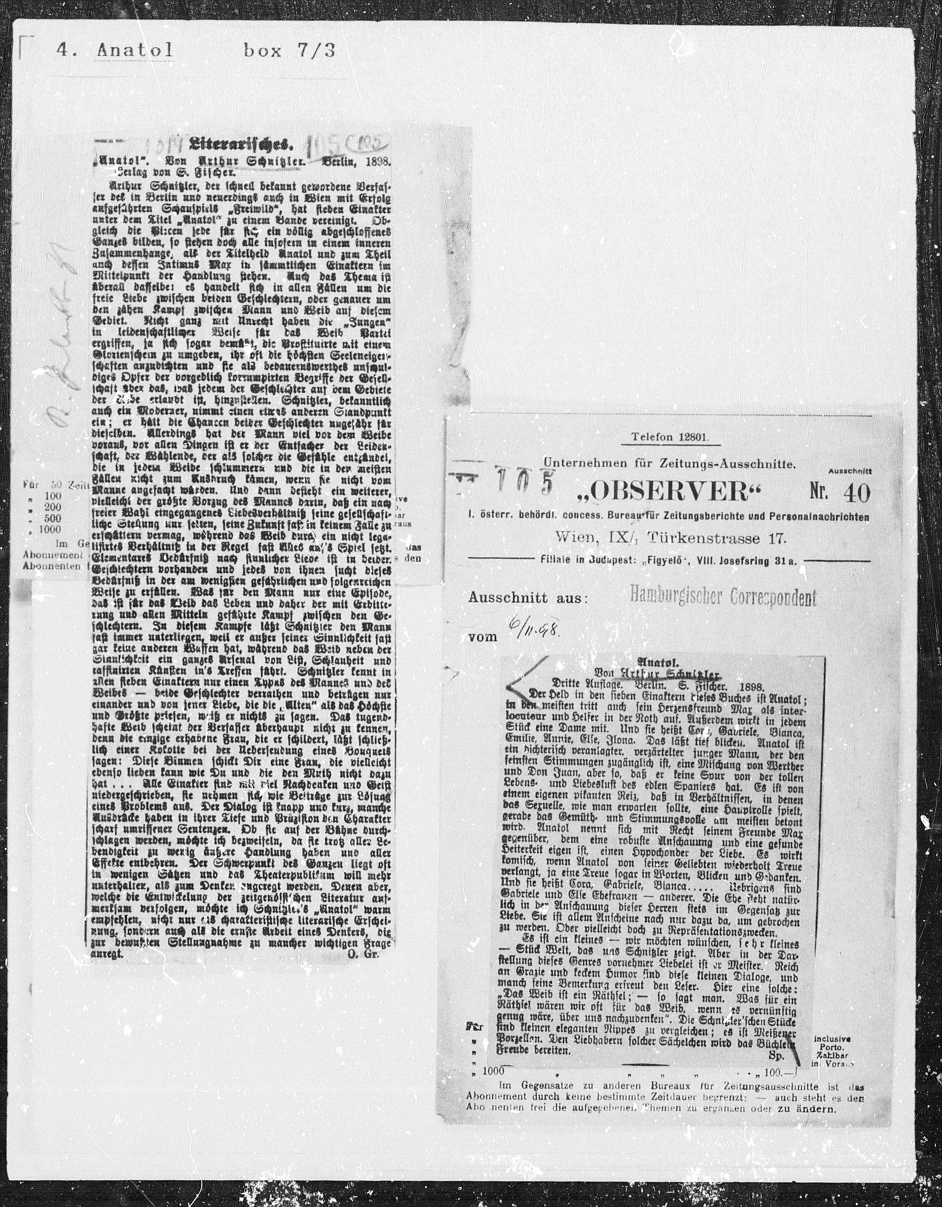 Zusammenhange, all der Titelheld Anatol und zum Theil