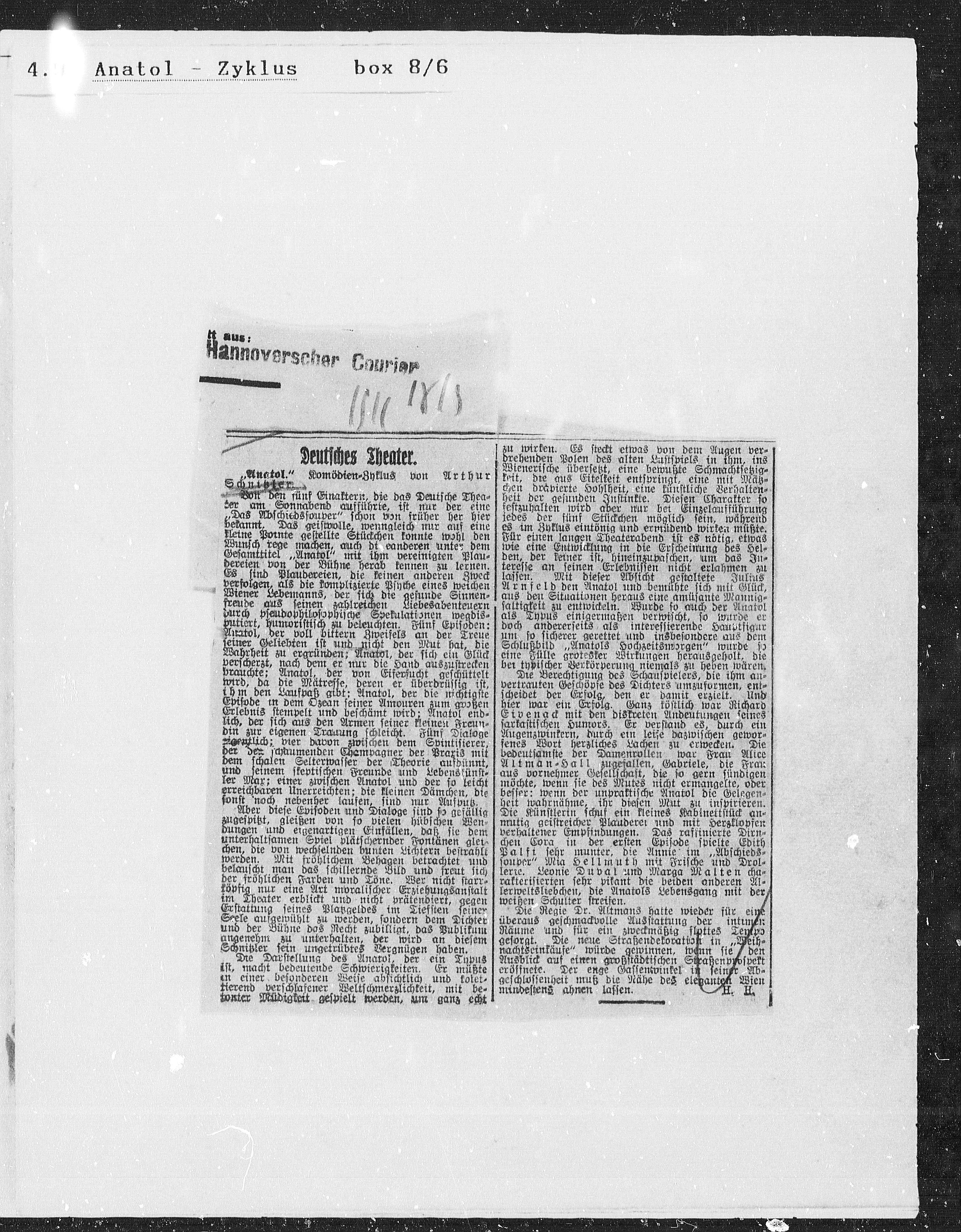 Gesamttitel „Anatol“ mit ihm vereinigten Plan