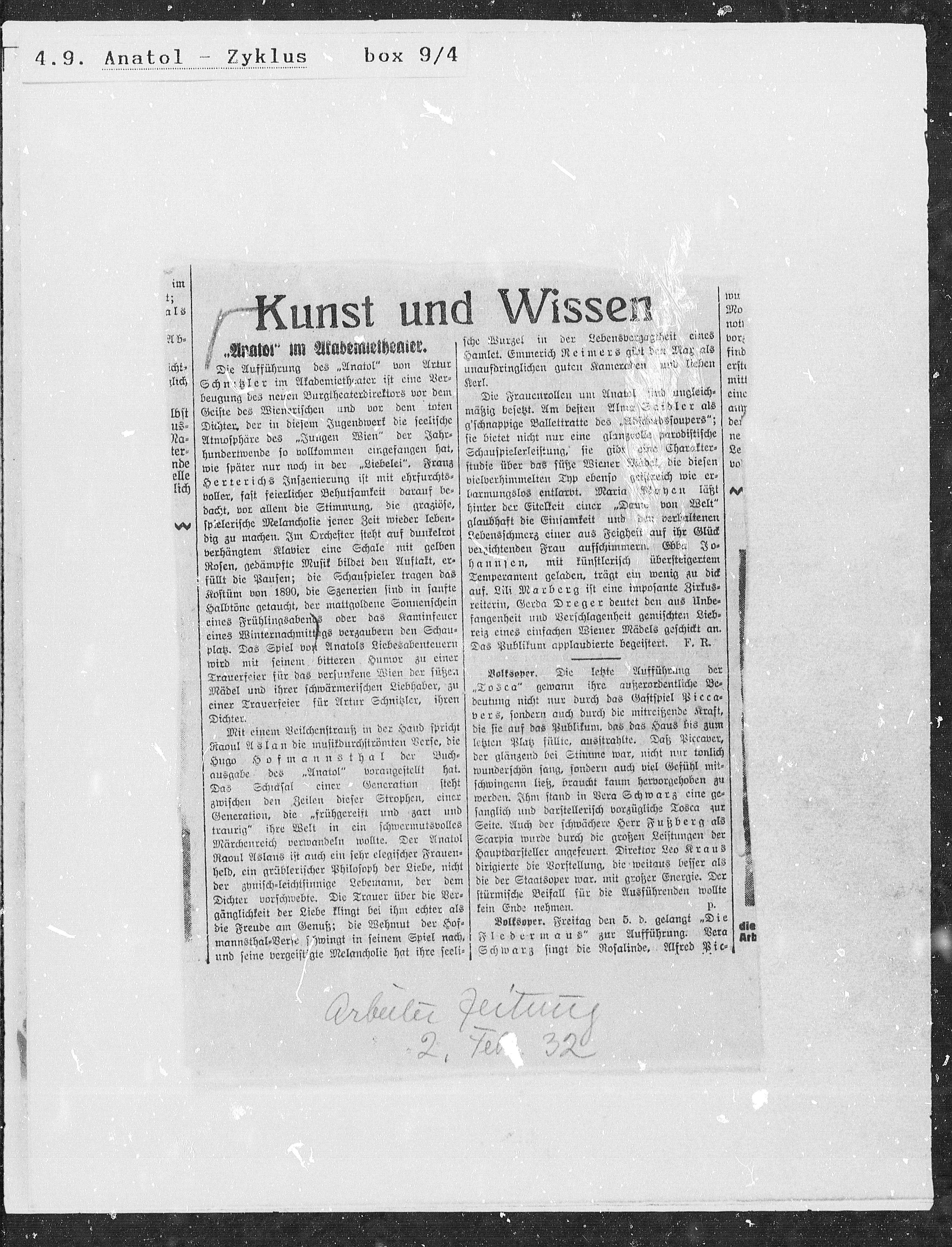ausgabe des „Anatol" vorangestellt