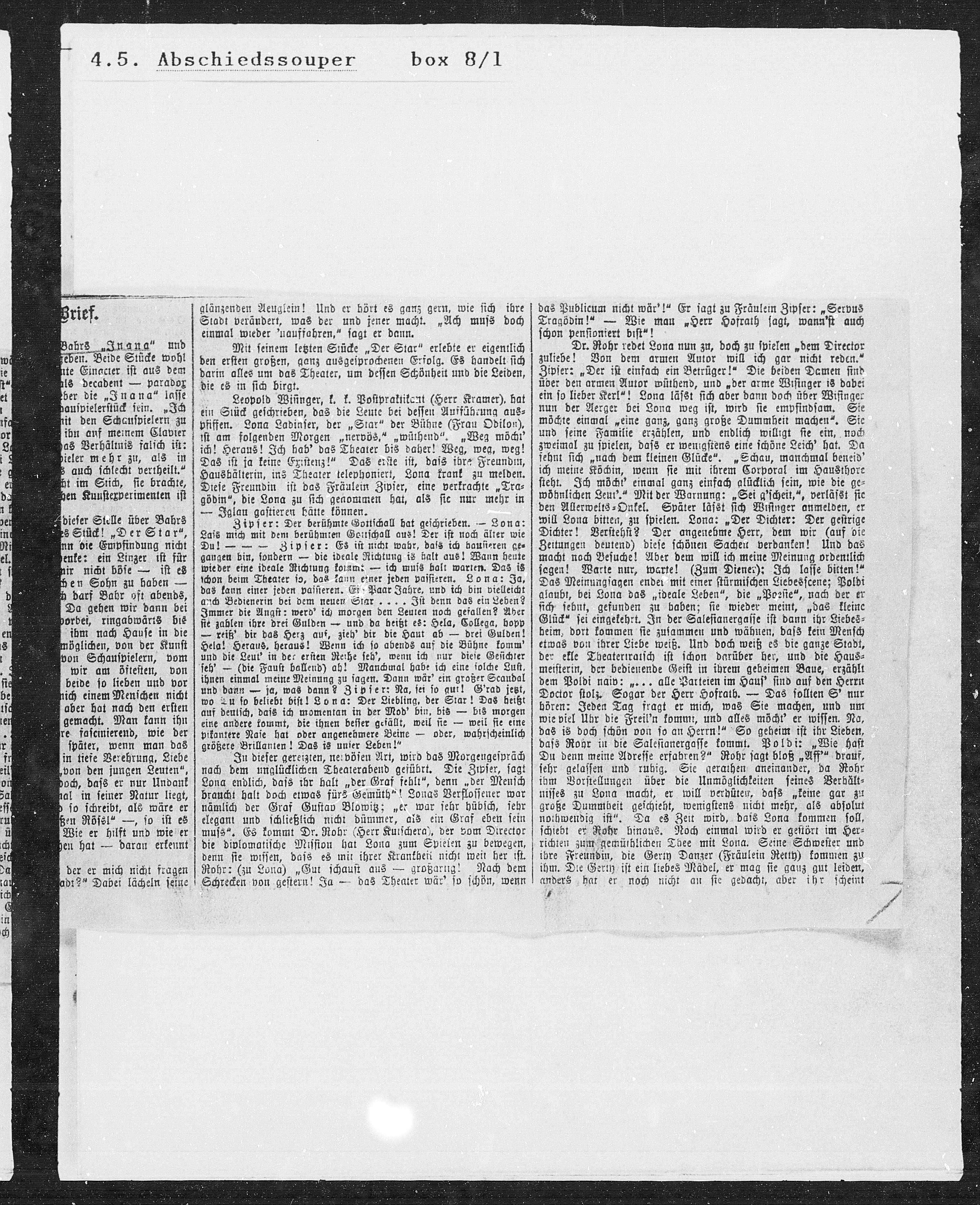 das Publicum nicht wär'!“ Er sagt zu Fräulein Zipser: „Servus
