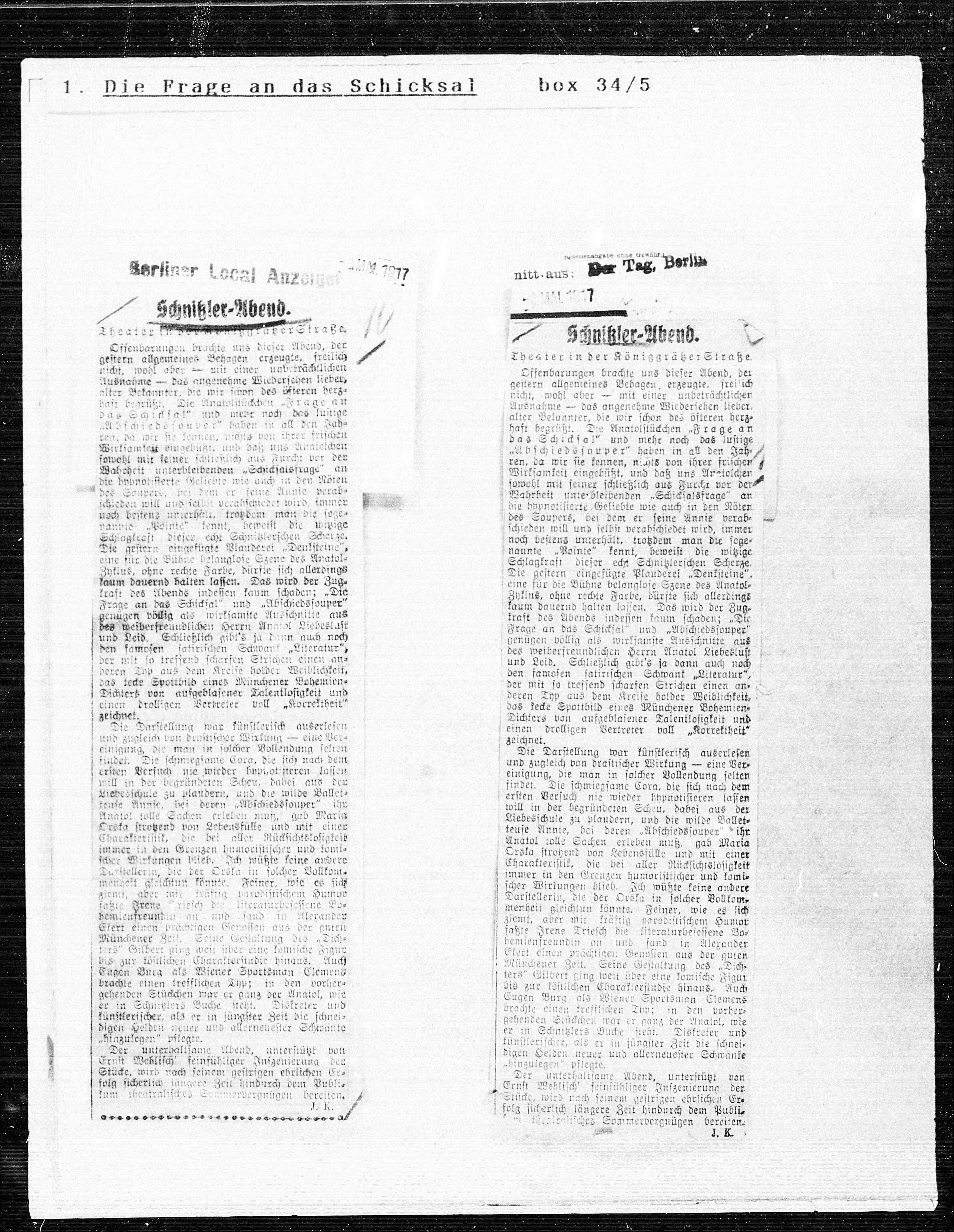 an das Schicksal box 34/5