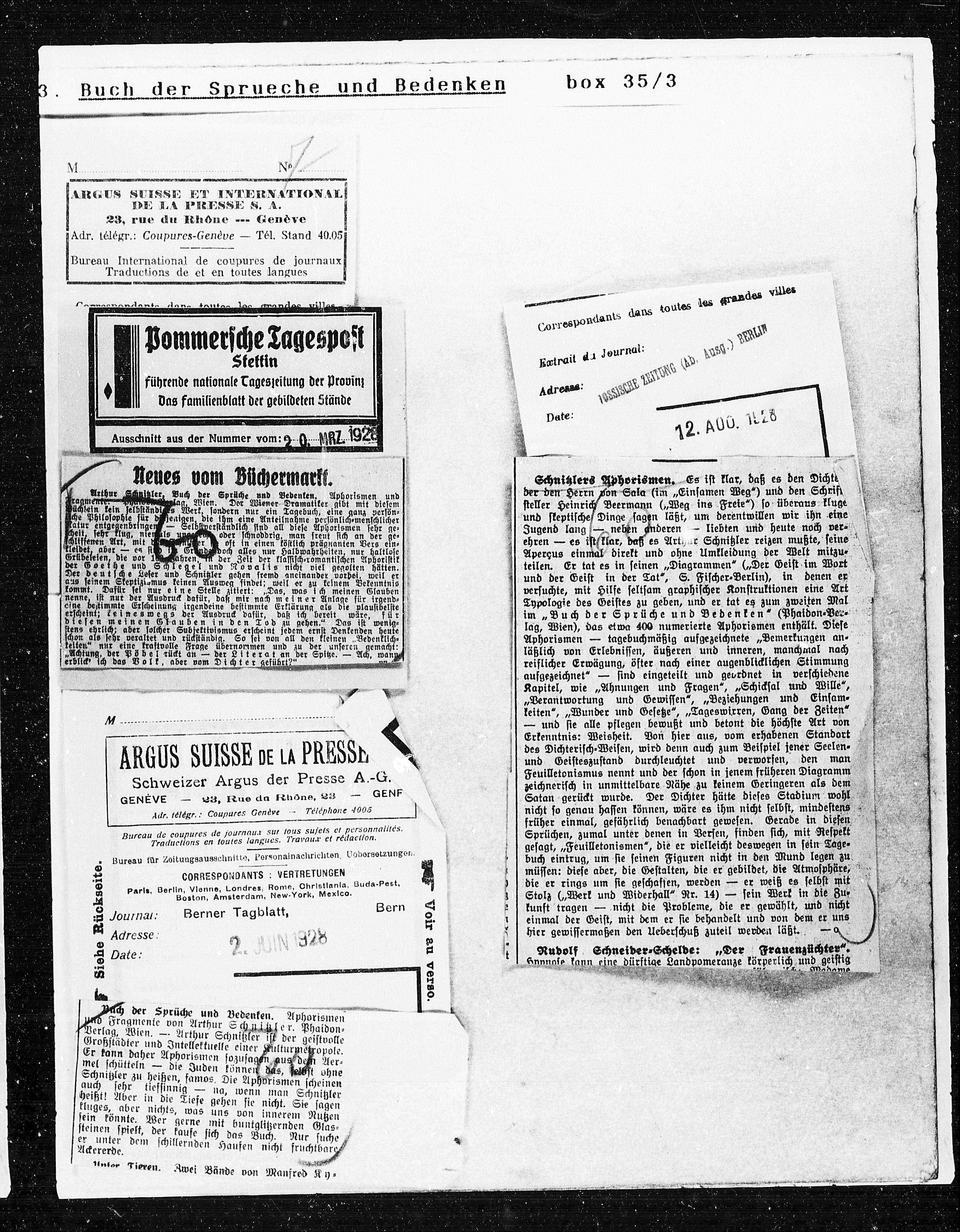 Schnitzlers Aphorismen. Es ist klar, daß es den Dichte