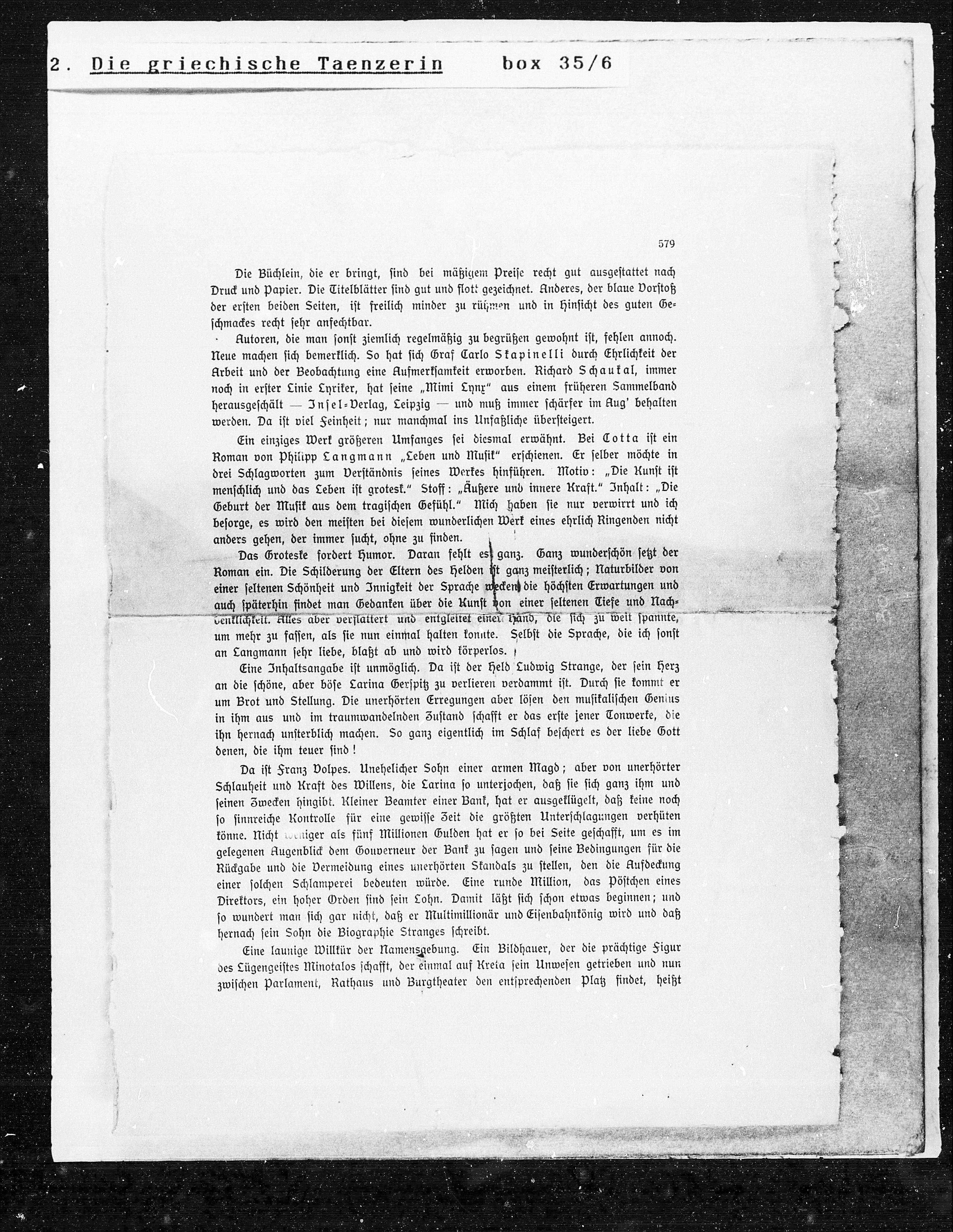 menschlich und das Leben ist grotesk.“ Stoff: „Kußere und innere Kraft.“ Inhalt: „Die