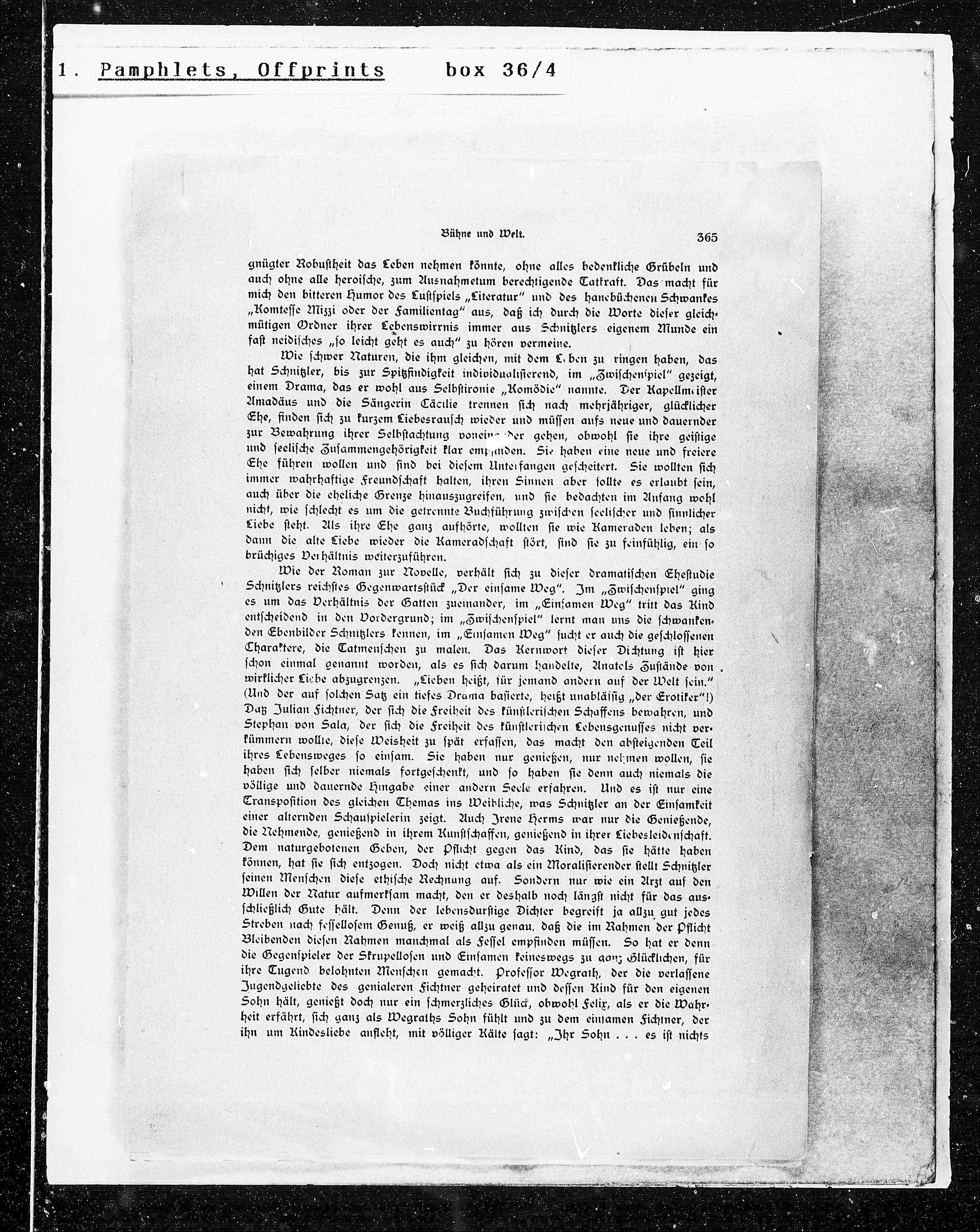 Schnitzlers reichstes Gegenwartsstück „Der einsame Weg“. Im „Zwischenspiel“ ging