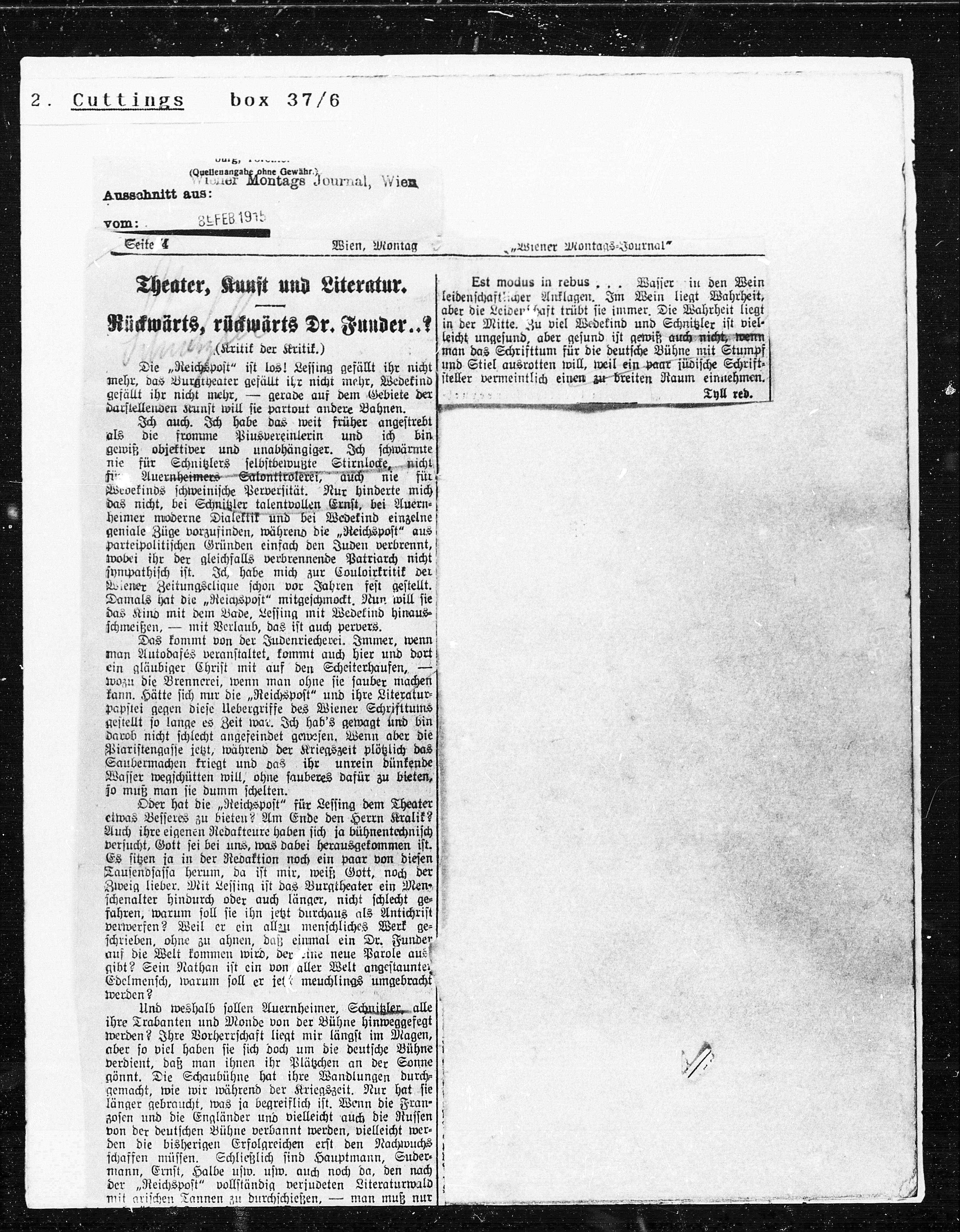 Die „Reichspost“ ist los! Lessing gefällt ihr nicht und Stiel ausrotten will, weil ein paar jüdische Schrift¬