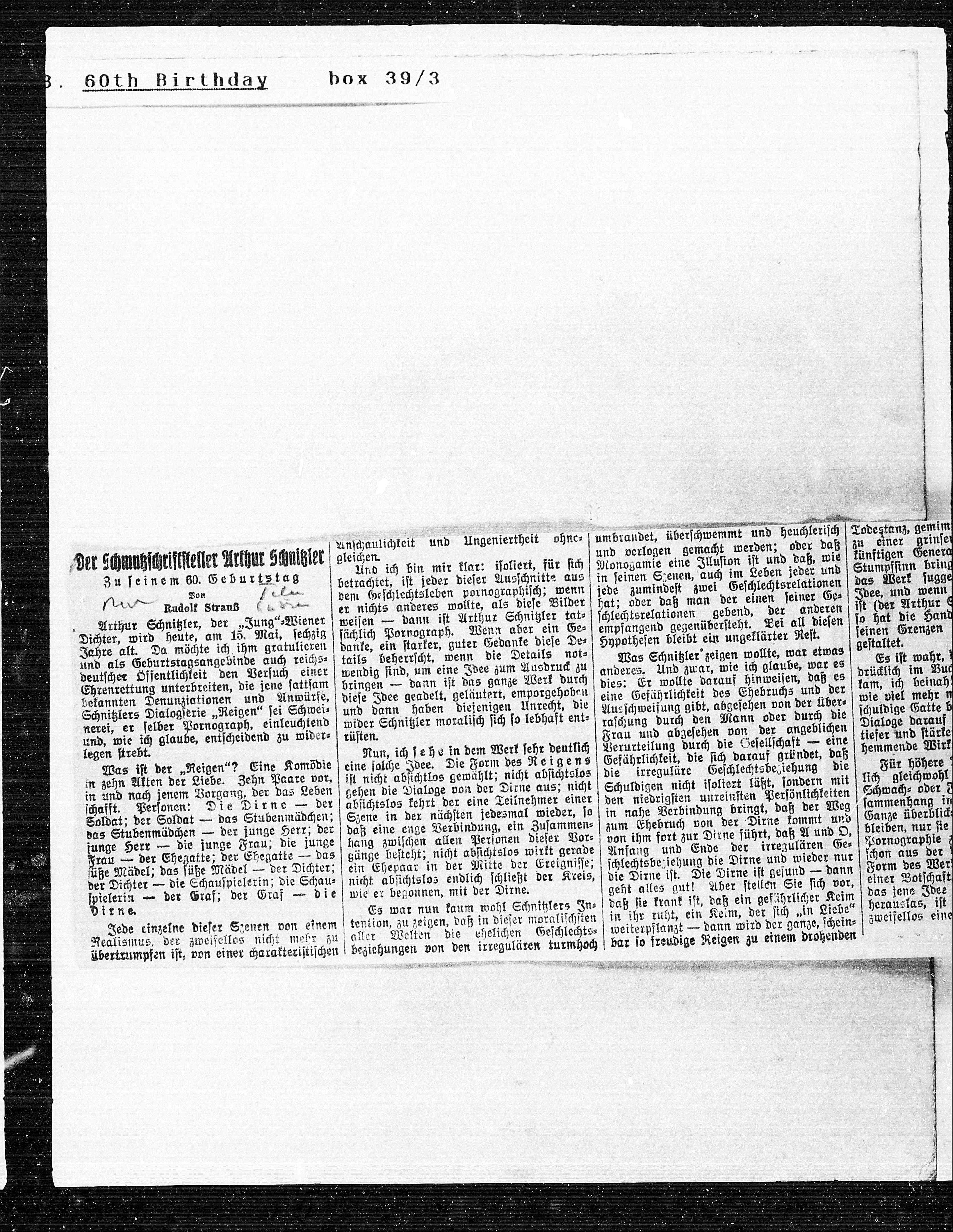 Der Schmuhschriftsteller Arthur Schnitzler