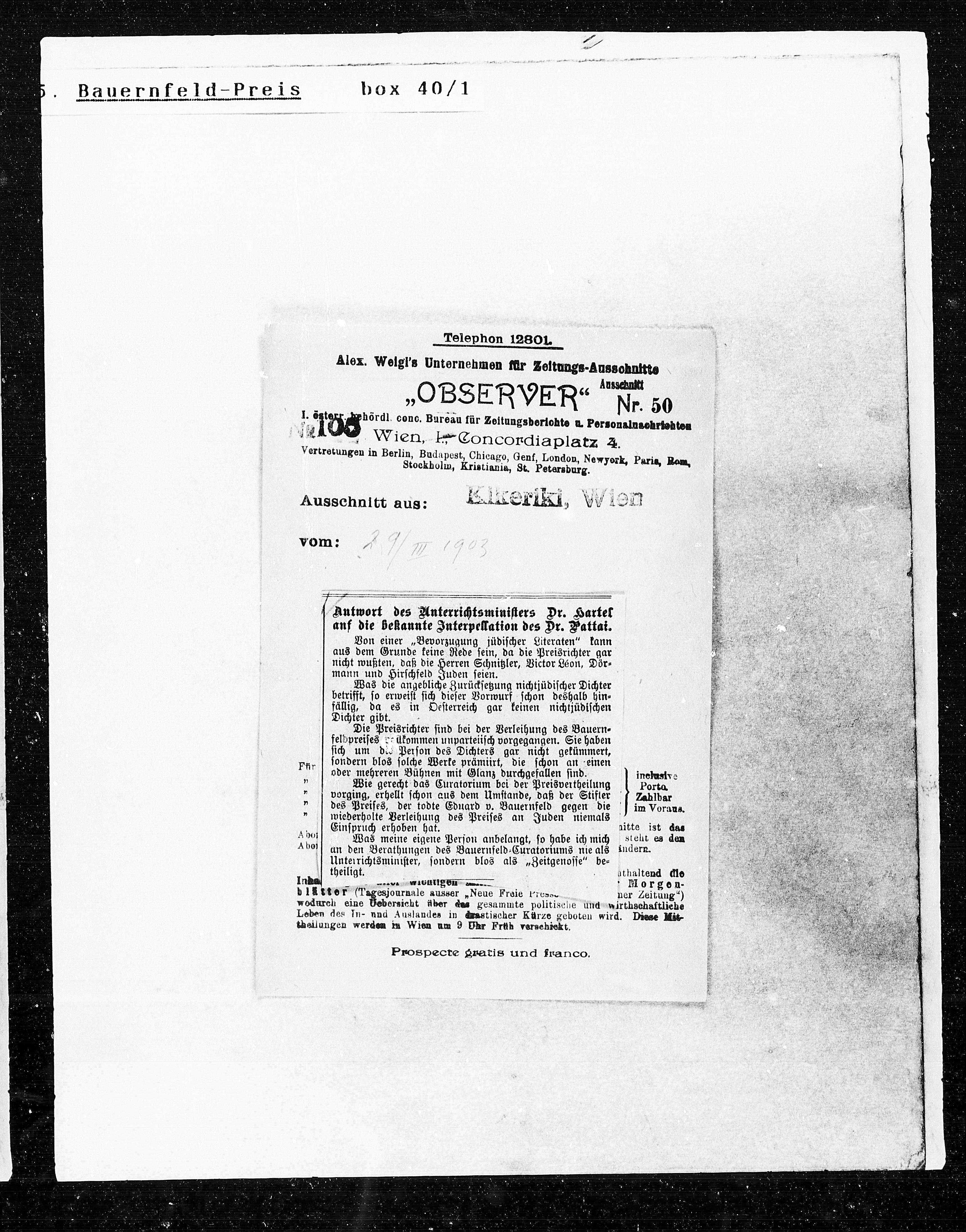 Alex. Welgl’s Unternehmen für Zeitungs-Aussohnitte