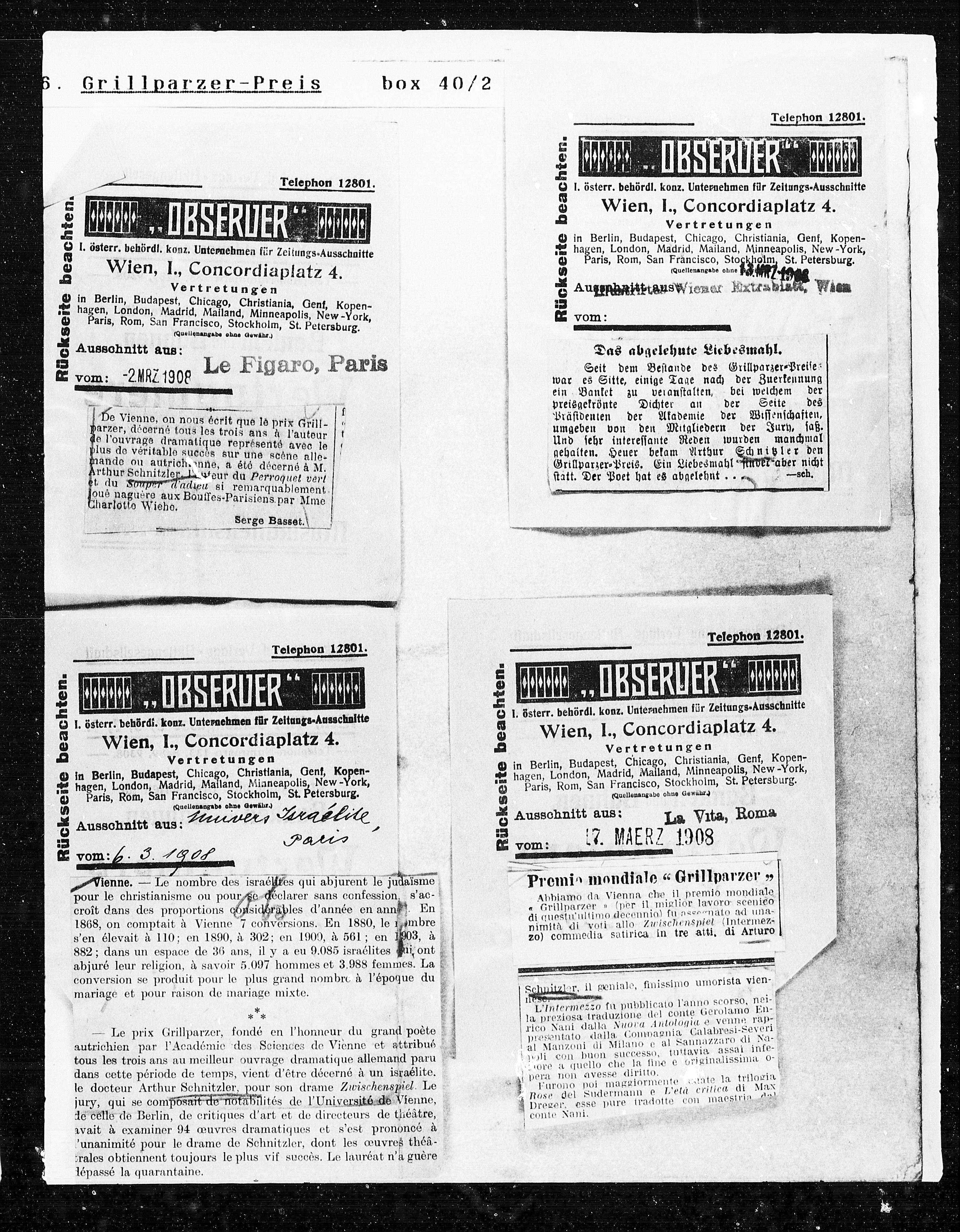 O l. österr. behördl. konz. Unternehmen für Zeitungs-Ausschnitte