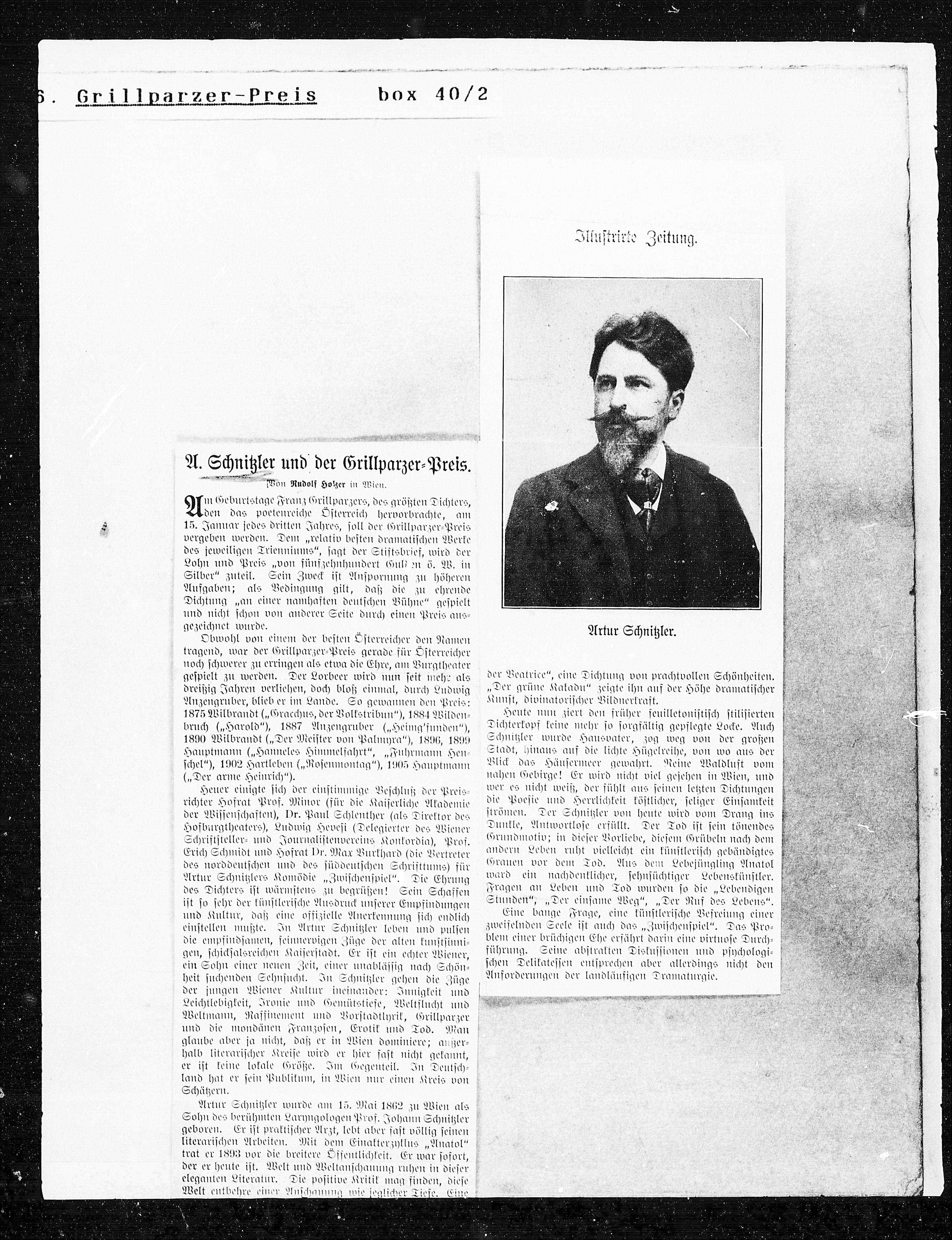 A. Schnitzler und der Grillparzer=Preis.