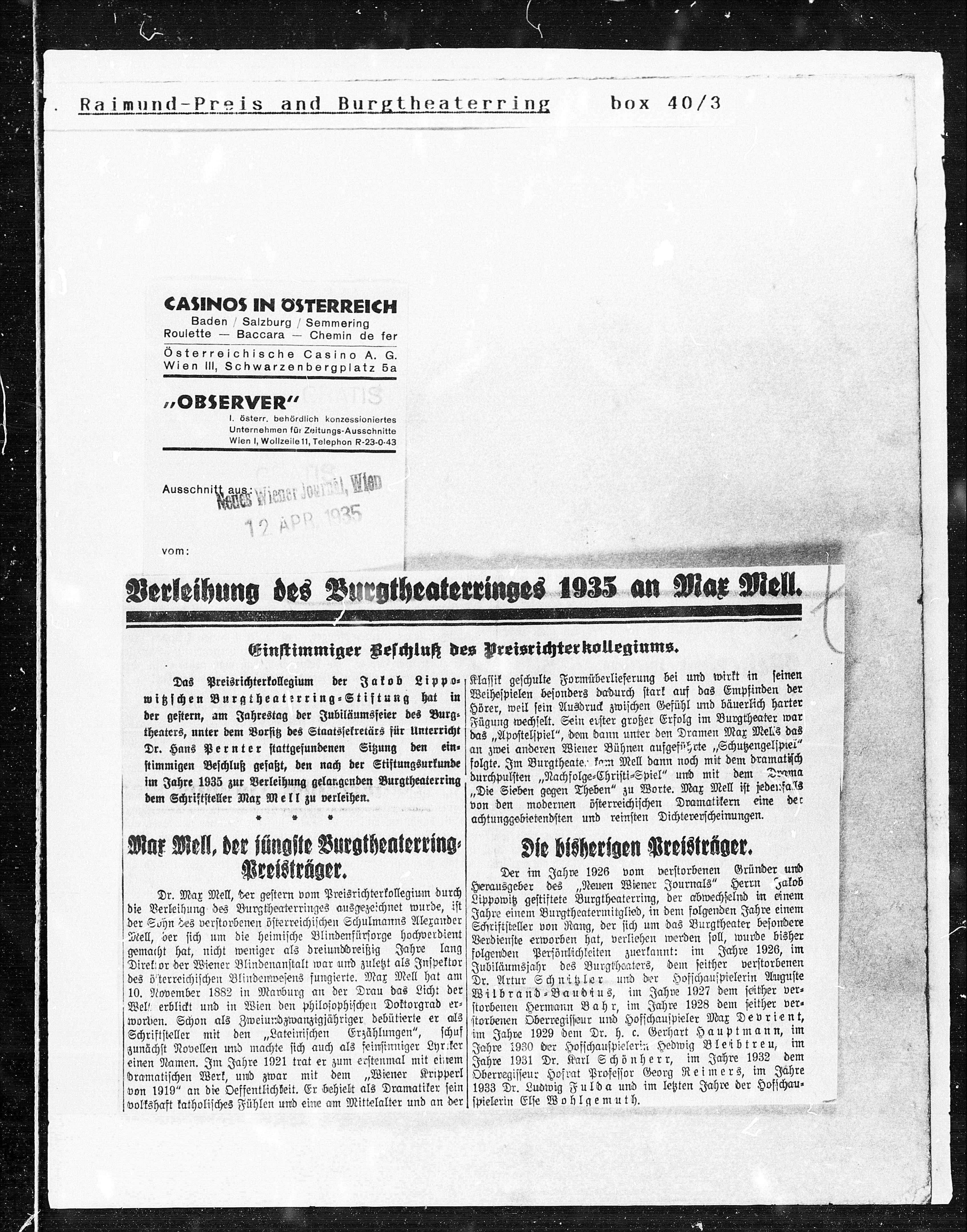 folgte. Im Burgtheate kam Mell dann noch mit dem dramatisch