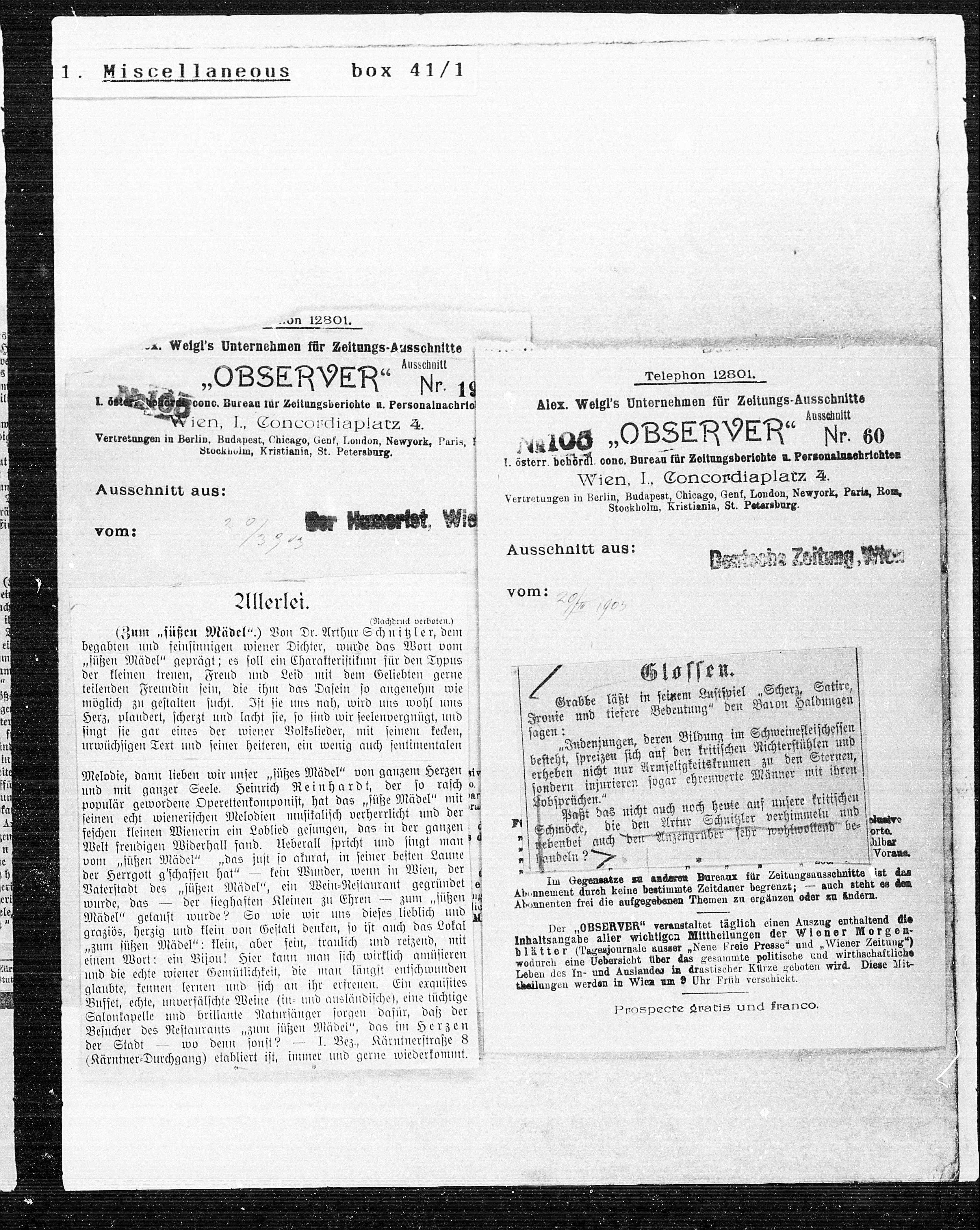 A. Weigl’s Unternehmen für Zeitungs-Ausschnitte