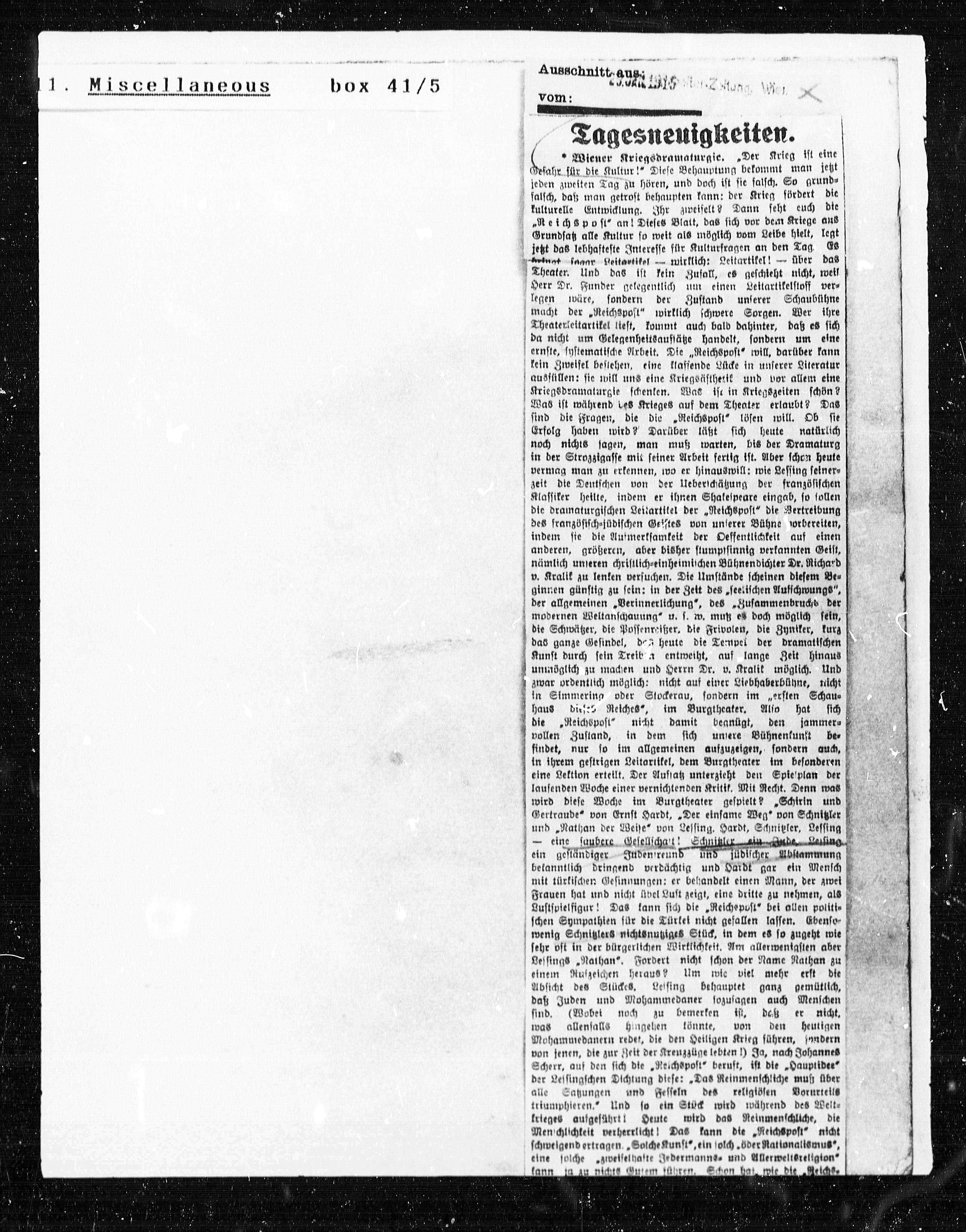 * Wiener Kriegsdramaturgie. „Der Krieg ist eine