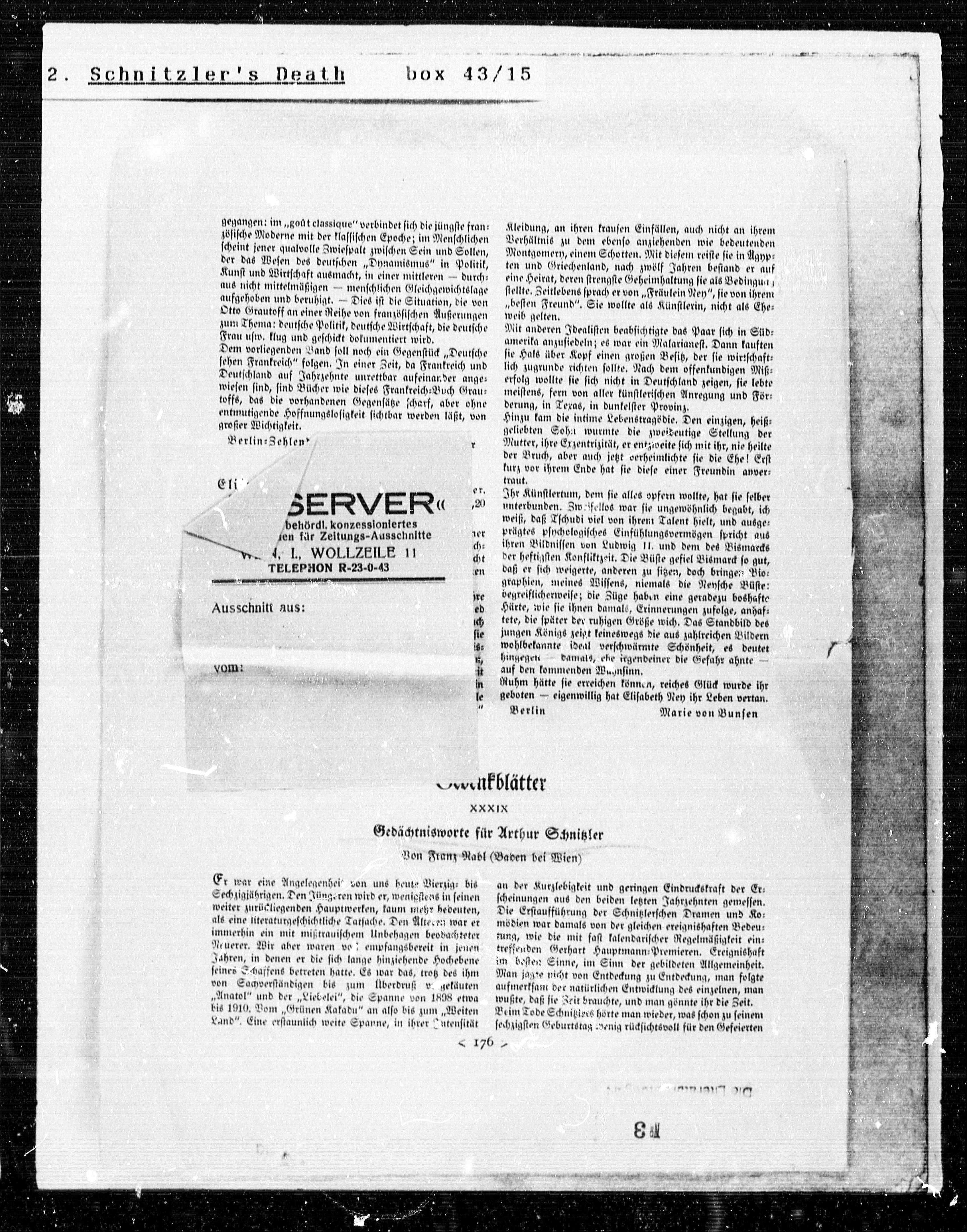 Gedächtnisworte für Arthur Schnitzler Gedächtnisworte für Arthur Schnitzler