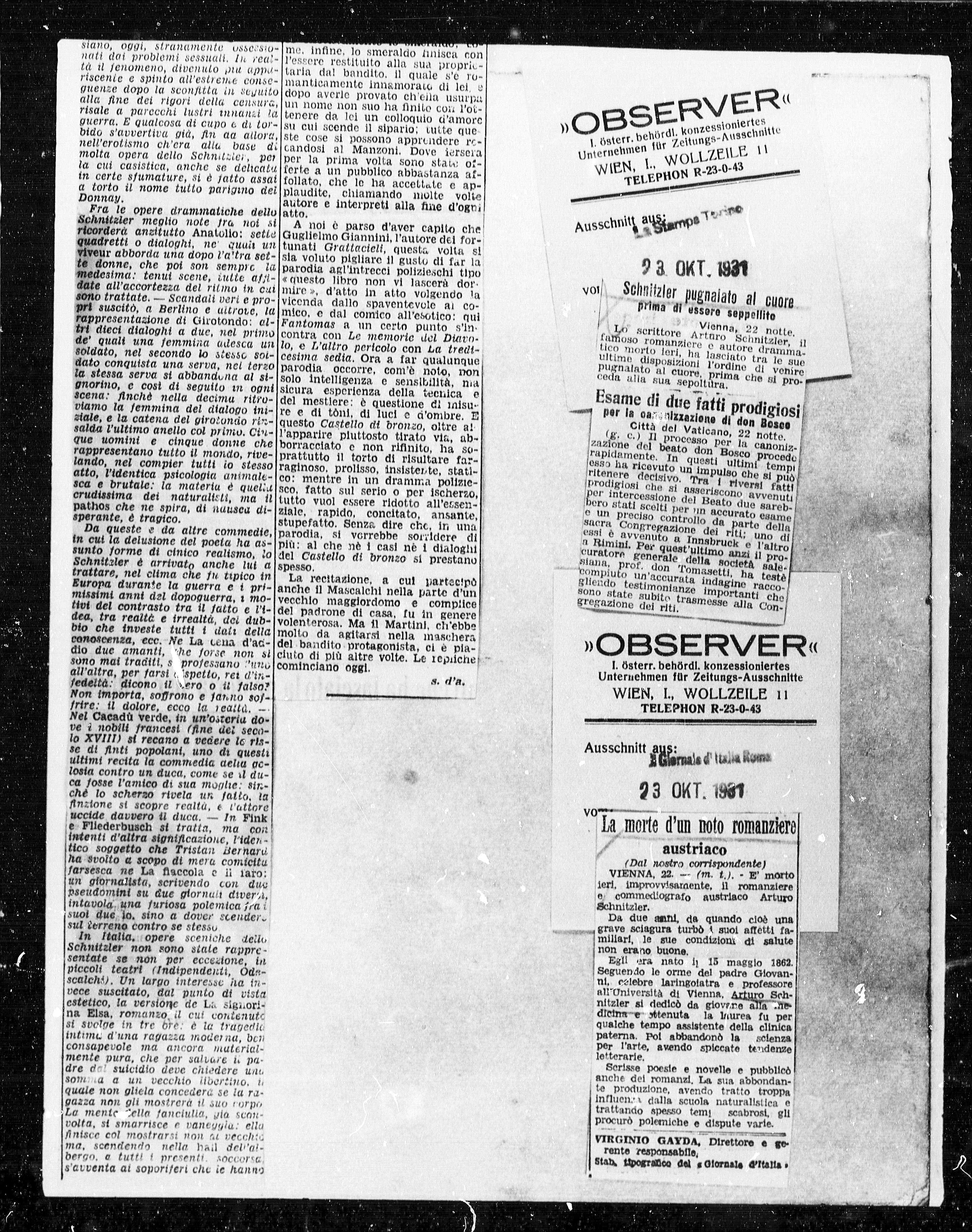 Lo scrittore Arturo Schnitzler, Lo scrittore Arturo Schnitzler,