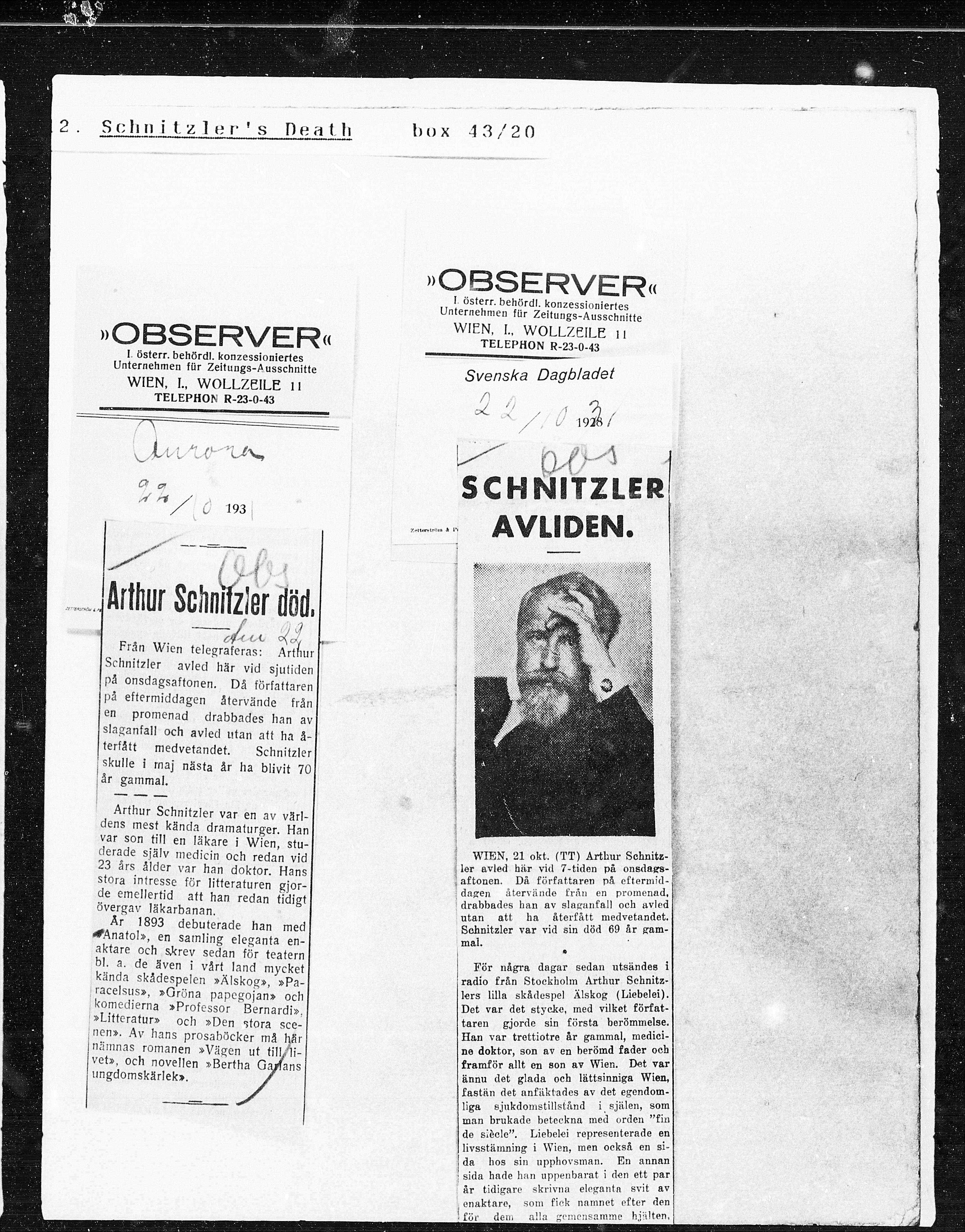 WIEN, 21 okt. (TT) Arthur Schnitz- WIEN, 21 okt. (TT) Arthur Schnitz-