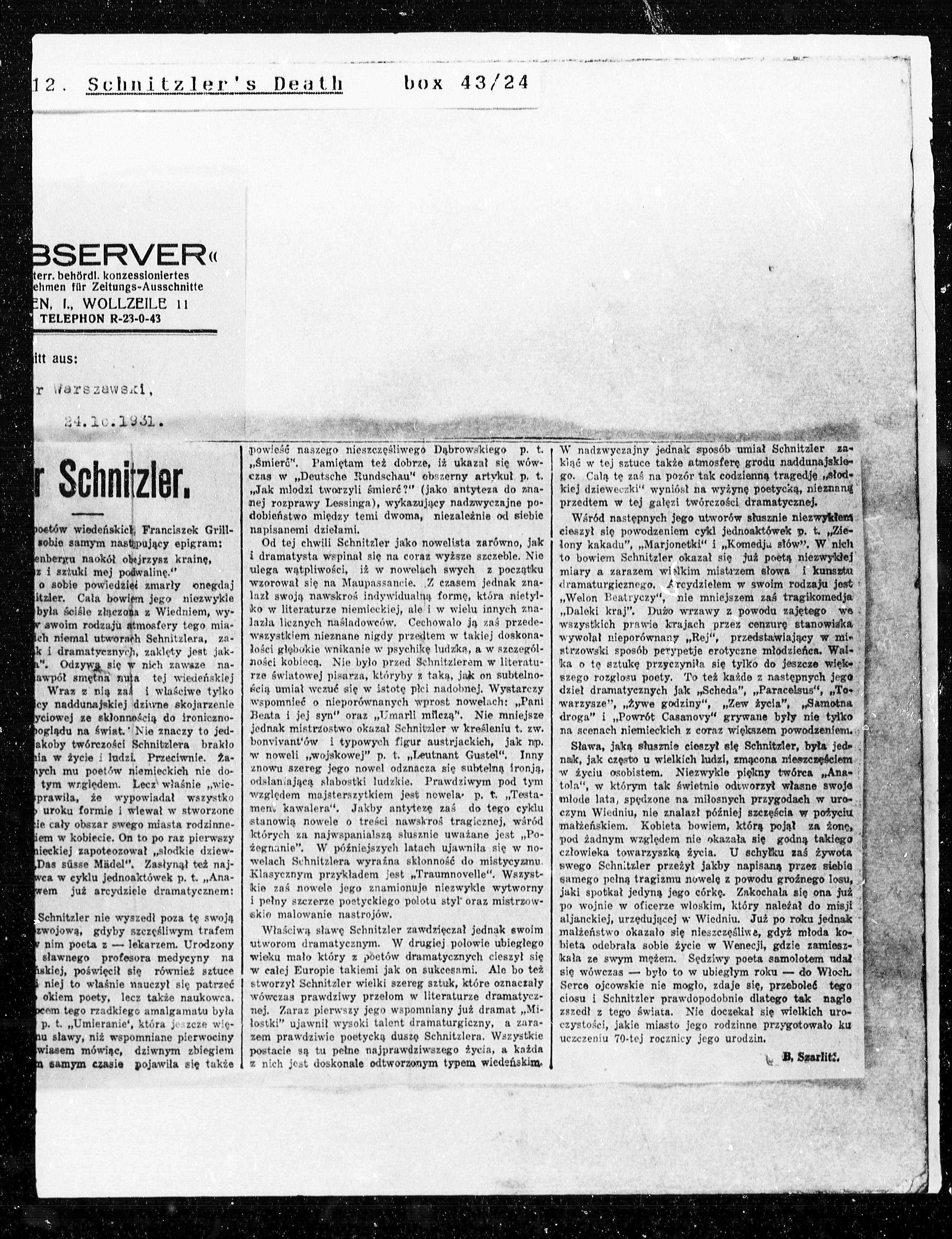 akoby twórczości Schnitzlera braklo akoby twórczości Schnitzlera braklo