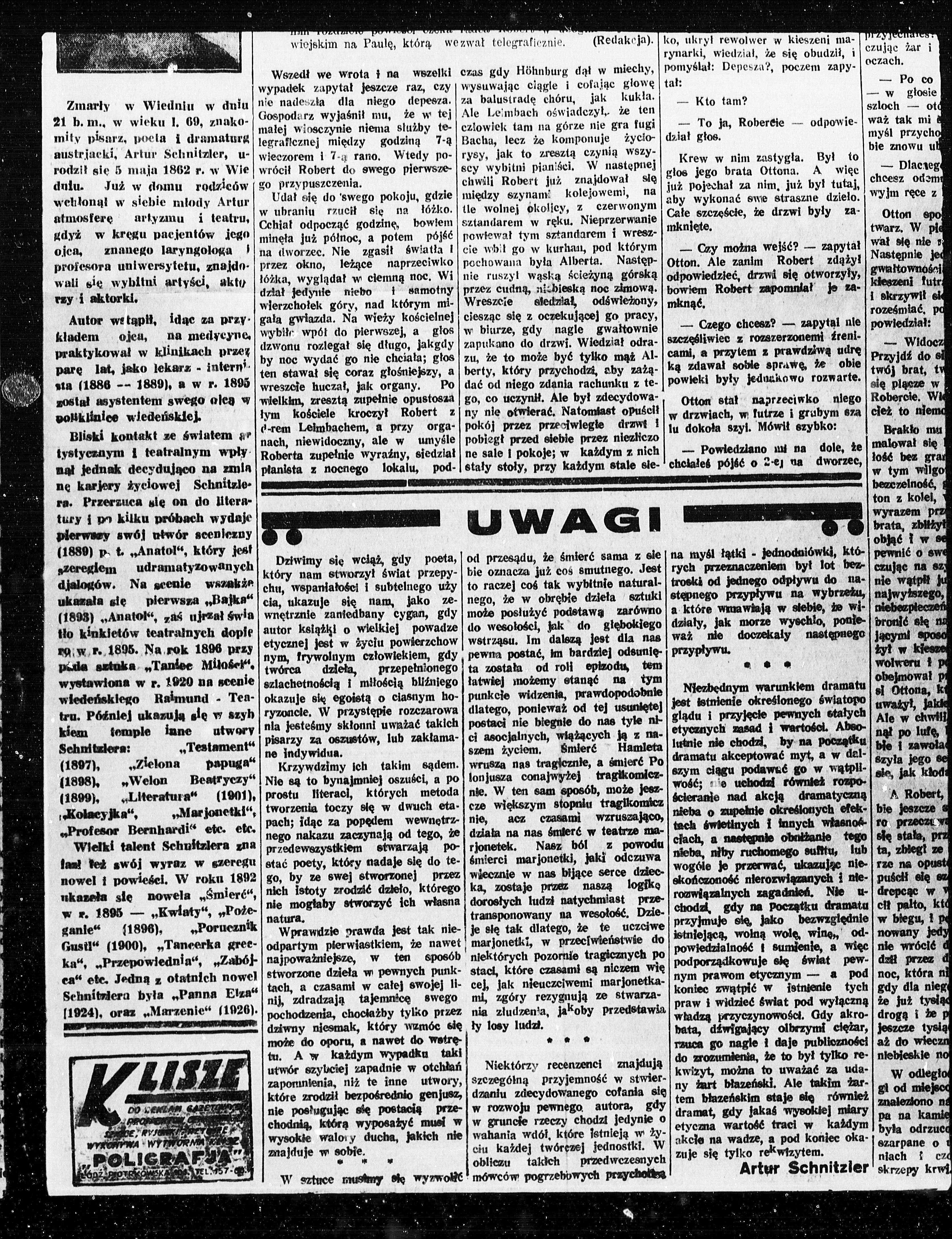 austrjacki, Artur Schnitzler, u- wieczorem 1 7-ą rano. Wtedy po- rysy, jak to zresztą czynią wszy austrjacki, Artur Schnitzler, u- wieczorem 1 7-ą rano. Wtedy po- rysy, jak to zresztą czynią wszy