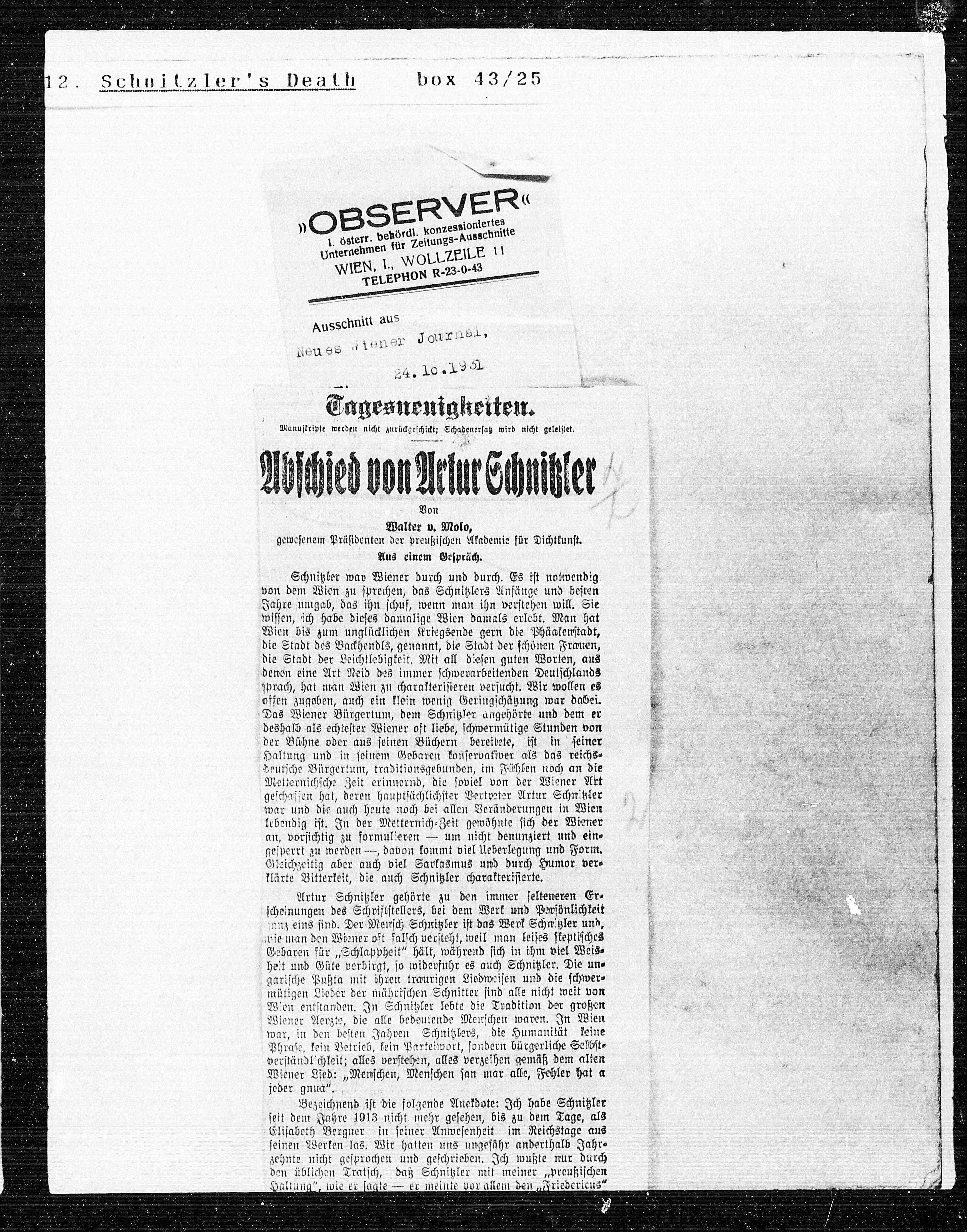 Bezeichnend ist die folgende Anekdote: Ich habe Schnitzler Bezeichnend ist die folgende Anekdote: Ich habe Schnitzler
