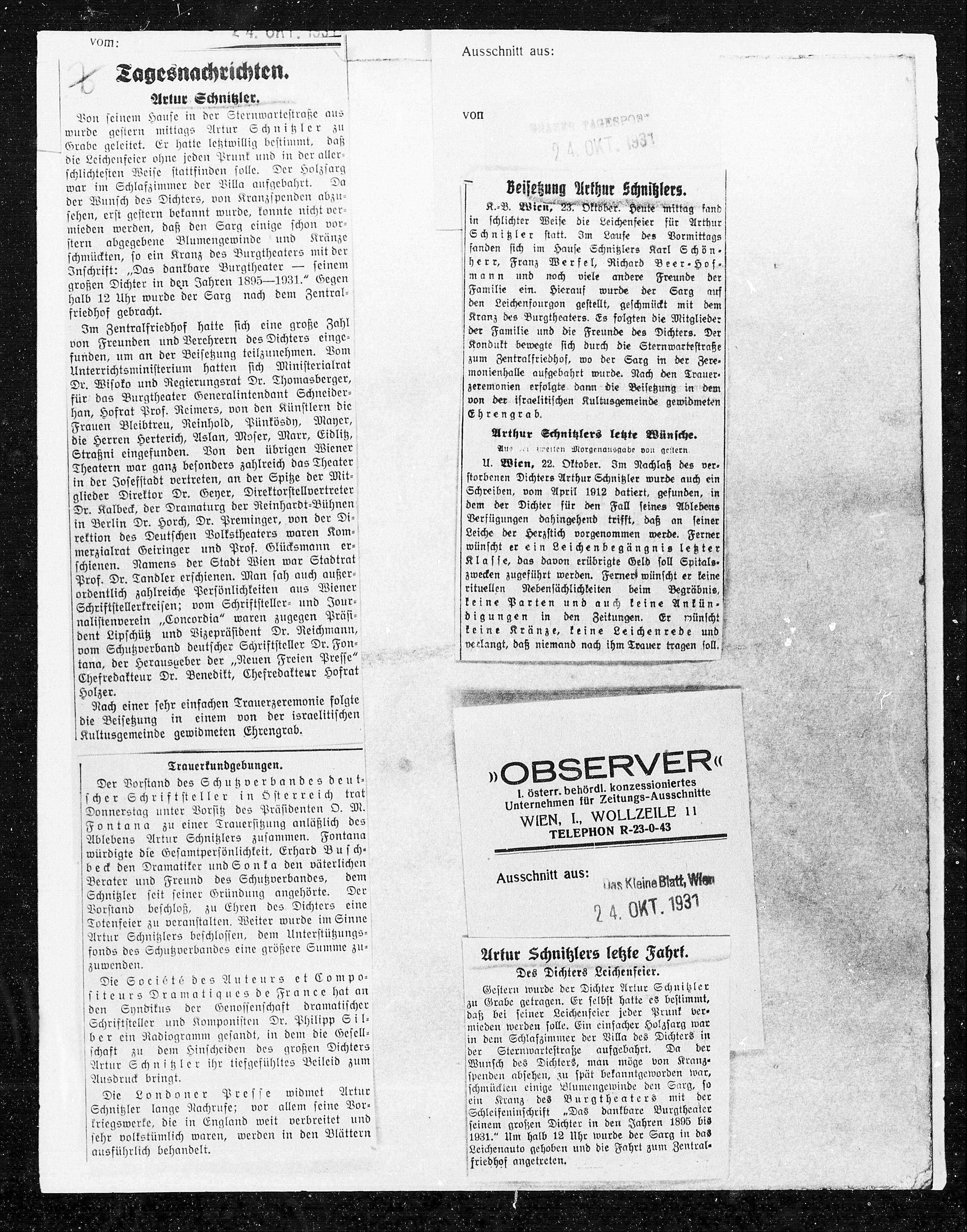 Beisetzung Arkhur Schnitzlers. Beisetzung Arkhur Schnitzlers.